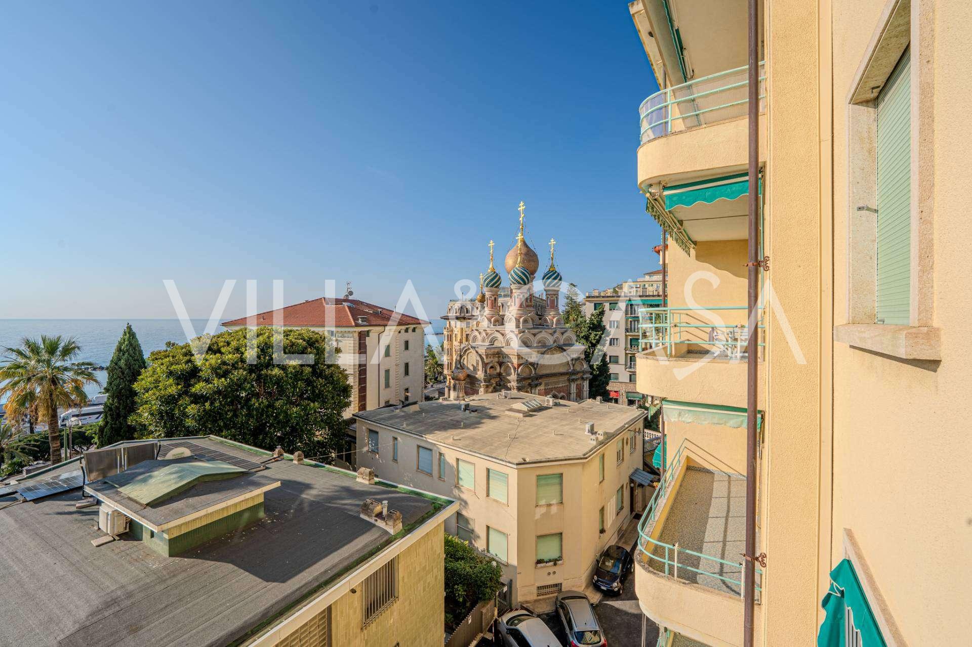 Просторная четырёхкомнатная квартира расположена в центре Санремо, напротив прекрасной Русской церкви, в престижном жилом комплексе с облагороженной территорией. Квартира занимает 104 м2 и находится на четвёртом этаже, откуда открывается вид на море и уникальную архитектуру Русской церкви.