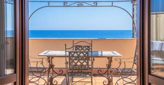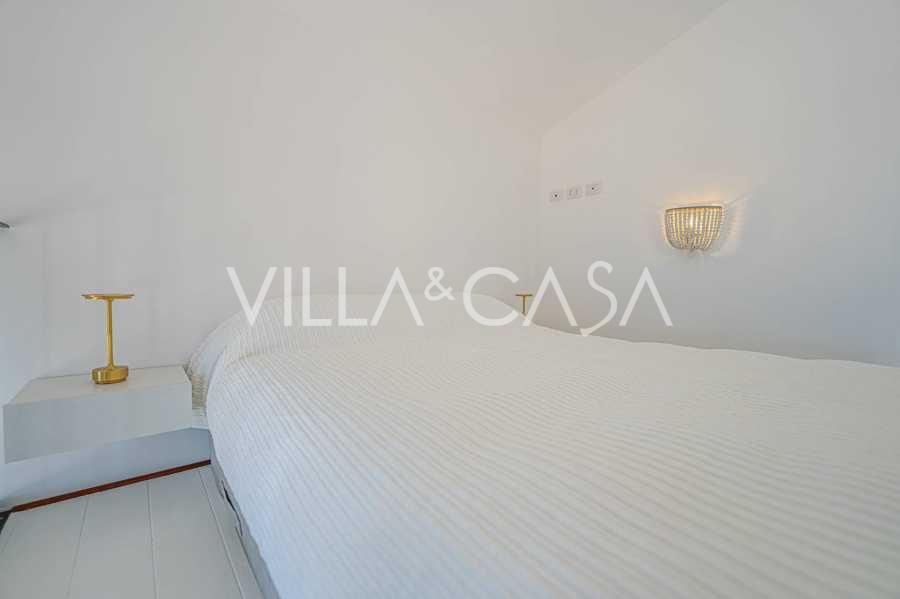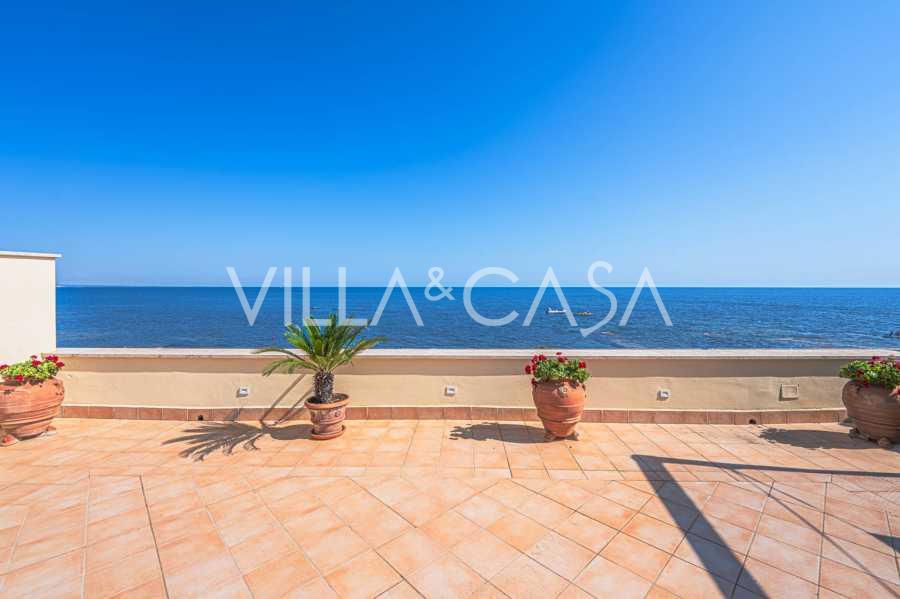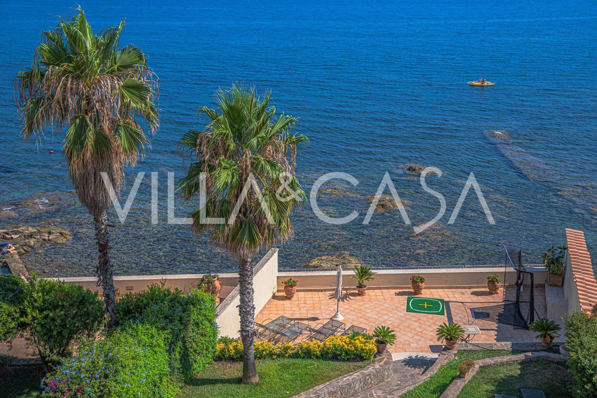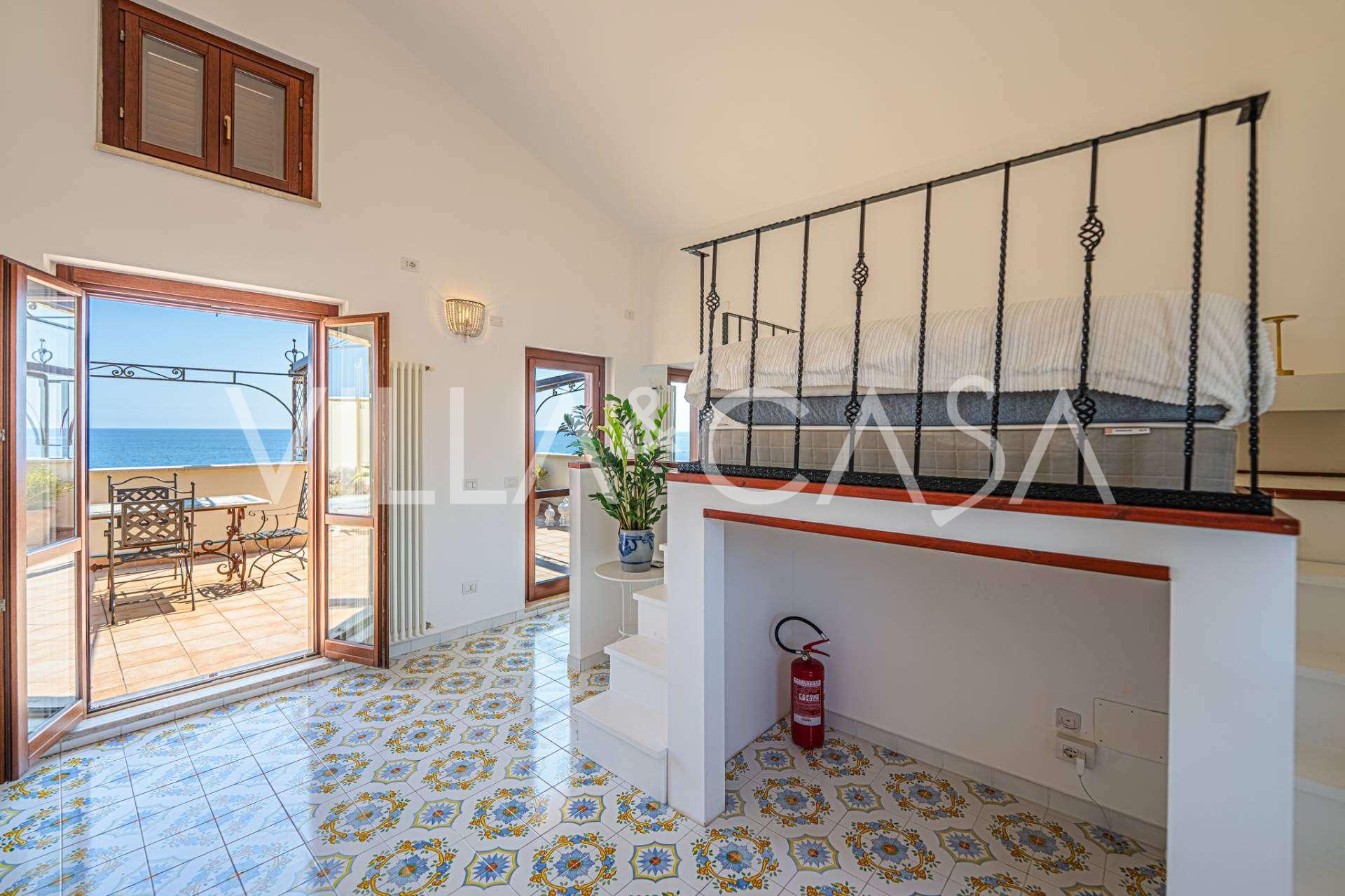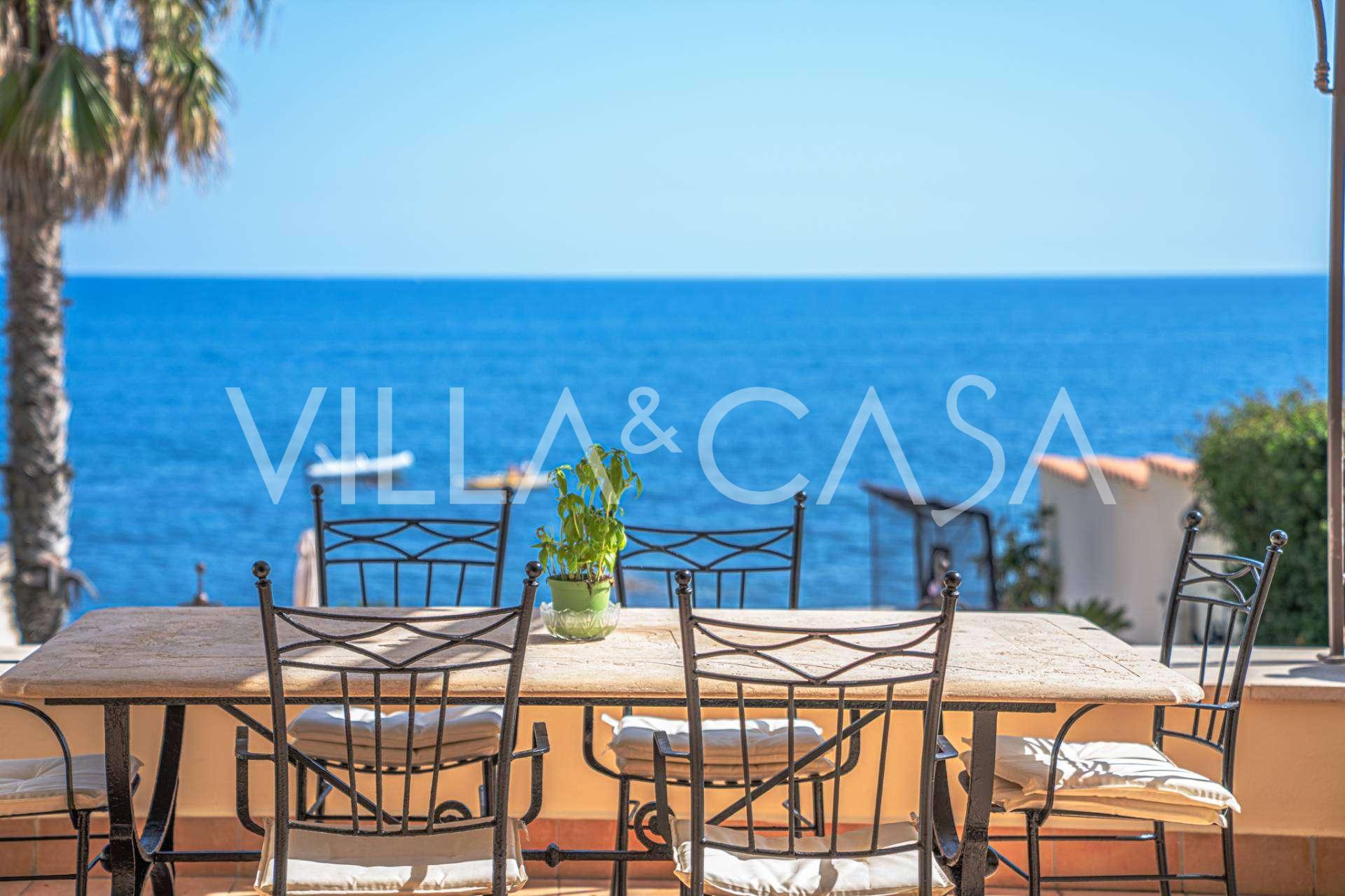 Окна предлагают панорамный 180-градусный вид на море, синий горизонт заполняет каждое внутреннее пространство и простирается до широких панорамных террас. Внутренние помещения, с высокими потолками более трех метров, терракотовыми полами того времени, мраморной лестницей и камином, создают атмосферу изысканной, вечной элегантности.