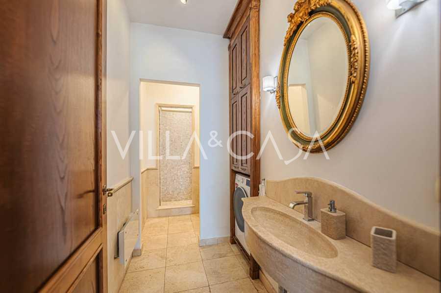 Вилла располагает пятью спальнями с кондиционерами, пятью изысканными ванными комнатами, а также удобным душем на открытом воздухе. Снаружи находится ухоженный средиземноморский сад с электрическими перголами, зонами отдыха и пространствами для жизни на открытом воздухе.