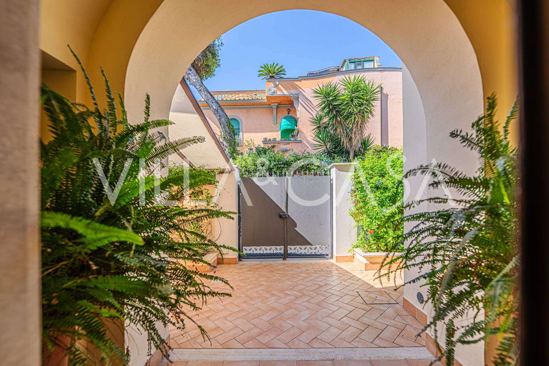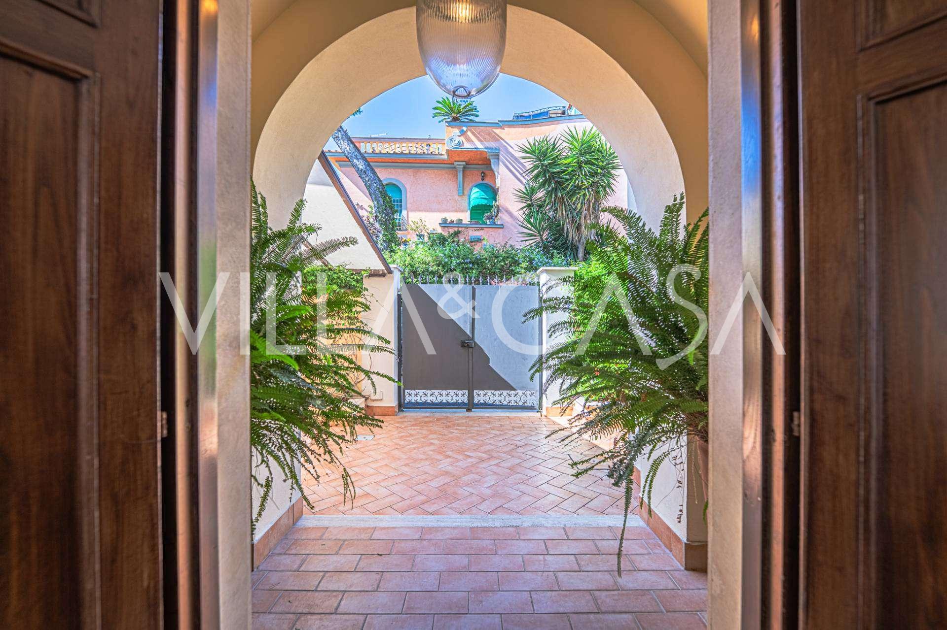 На одном из самых престижных участков побережья Санта-Маринелла, на улице с богатой историей, располагается эта великолепная вилла начала XX века с видом на Средиземное море.