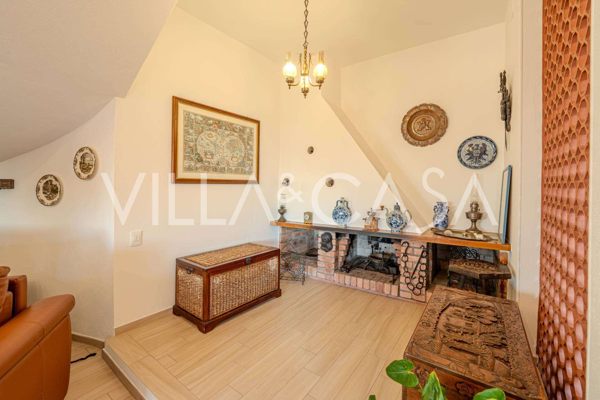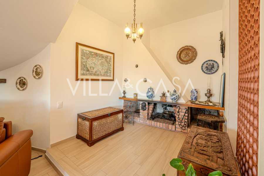 На втором уровне: большая гостиная с камином и видом на море, из которой есть выход в сад и на балкон. Кухня также с видом на море. Ванная комната.