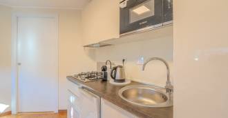 На первом уровне находятся отдельные апартаменты, которые включают: прихожую с гардеробом, гостиную с кухней и ванную комнату.
