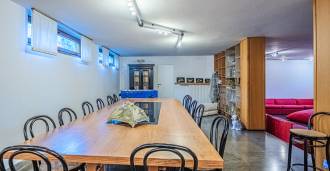 Цокольный этаж: два отдельных входа, просторный двухуровневый салон с панорамными окнами и выходом на террасу и в сад, современная кухня, столовая, кабинет и гостевой туалет.