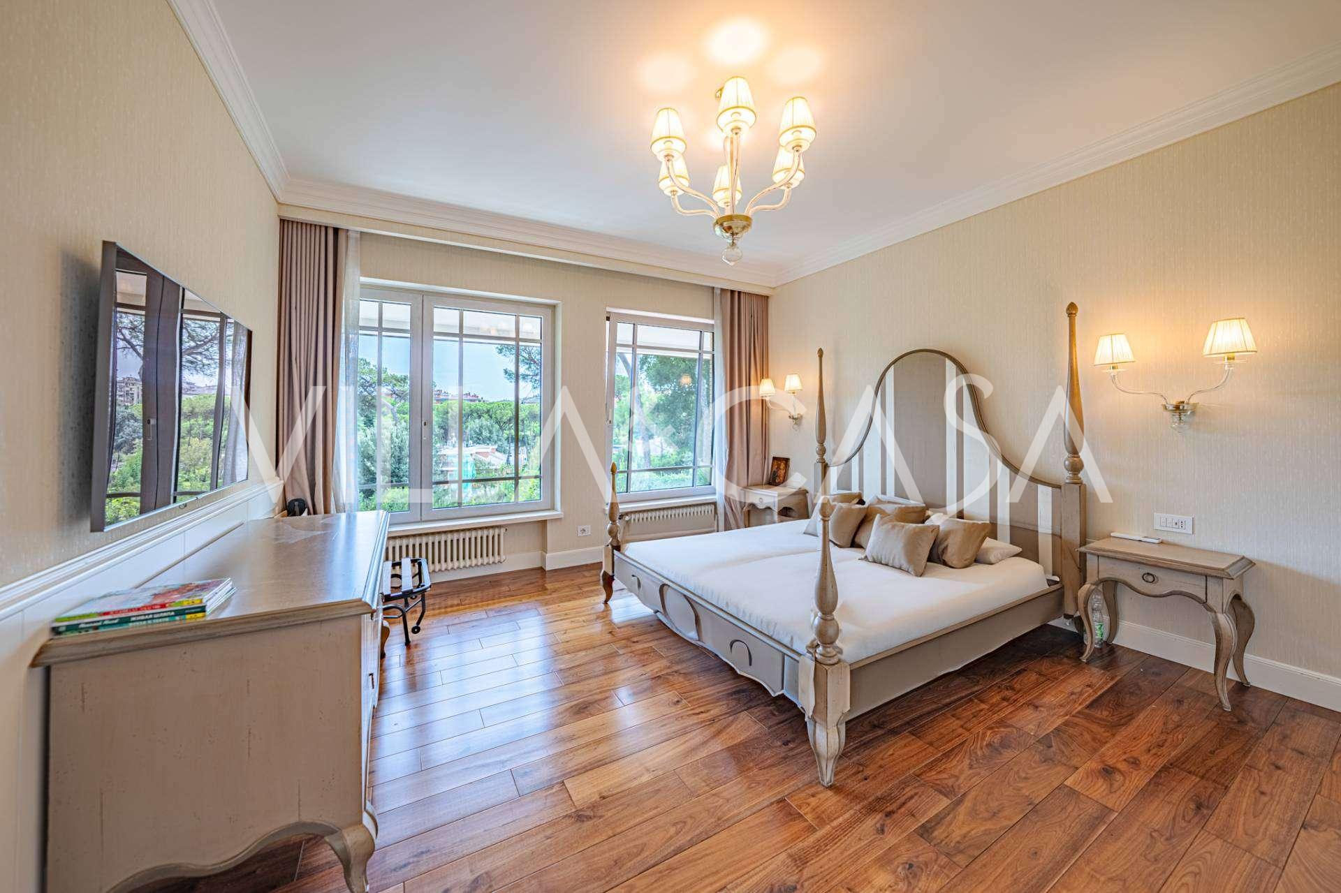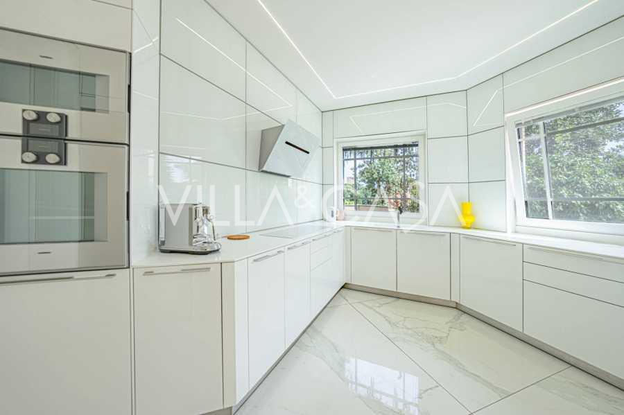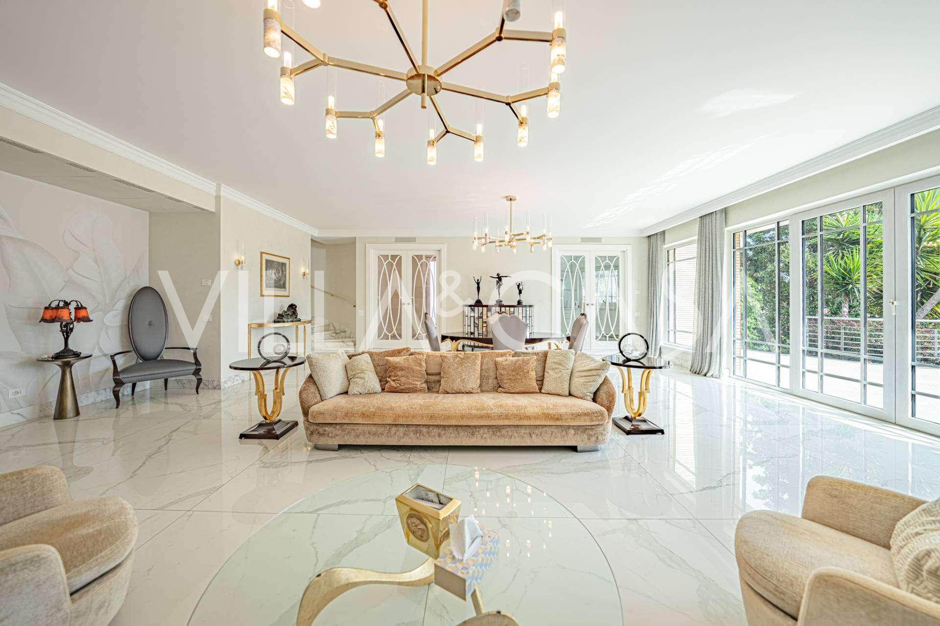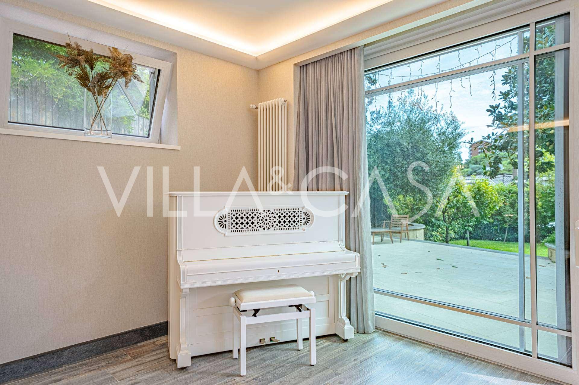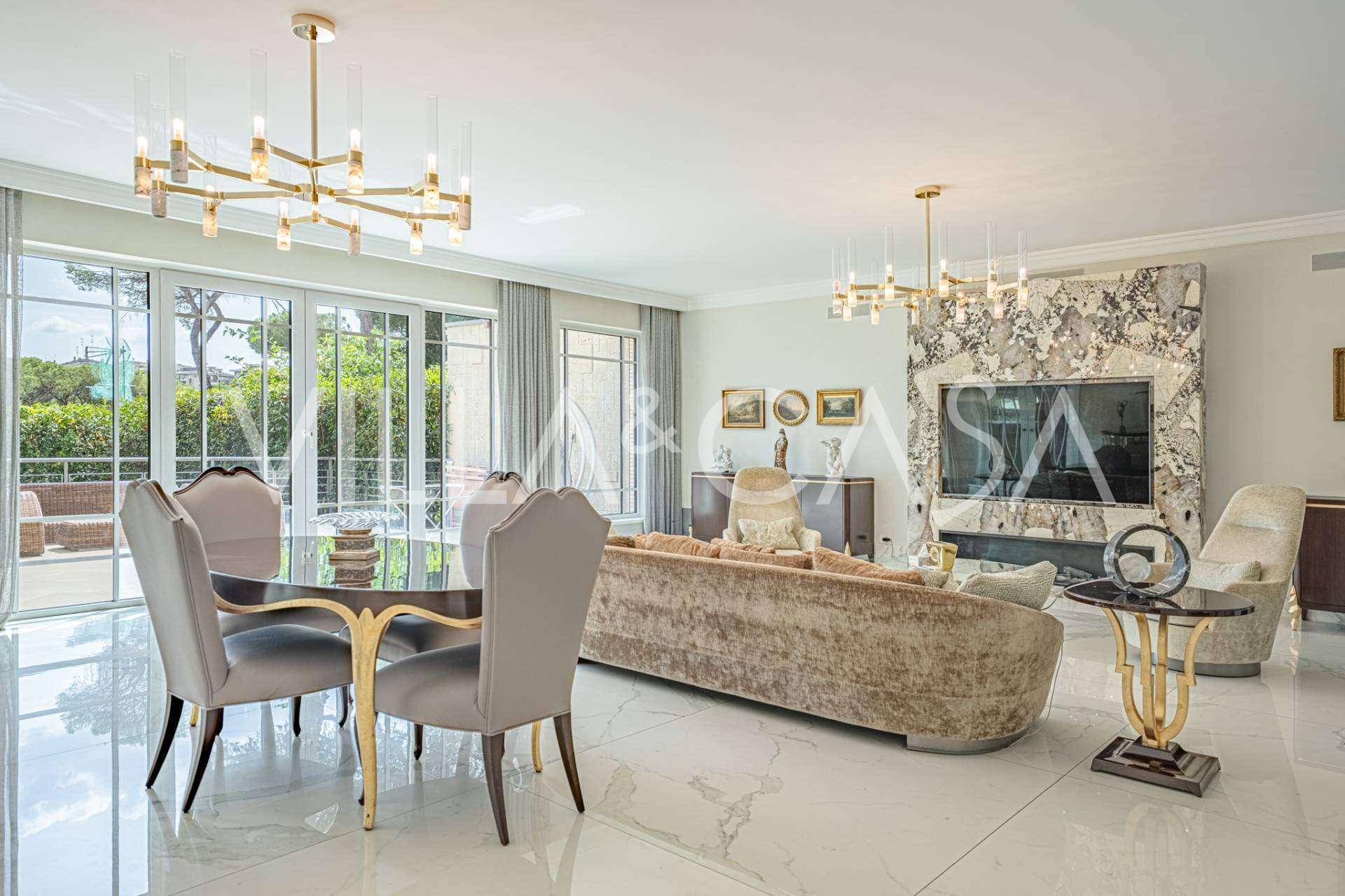 На одной из самых престижных улиц в районе EUR расположена утончённая резиденция, полностью обновлённая в 2020 году. Эта вилла сочетает в себе изысканную эстетику, современный дизайн и высокий уровень комфорта, создавая пространство, подходящее для самых требовательных ценителей.
