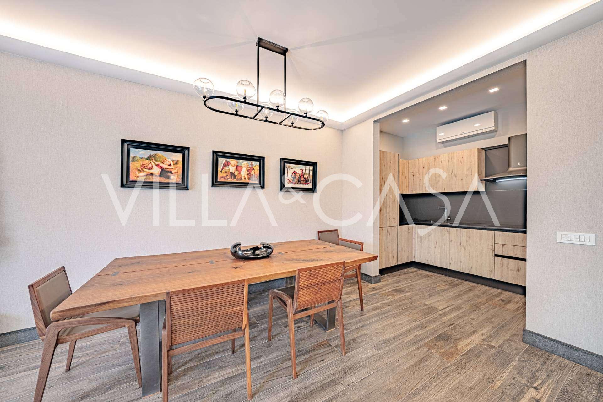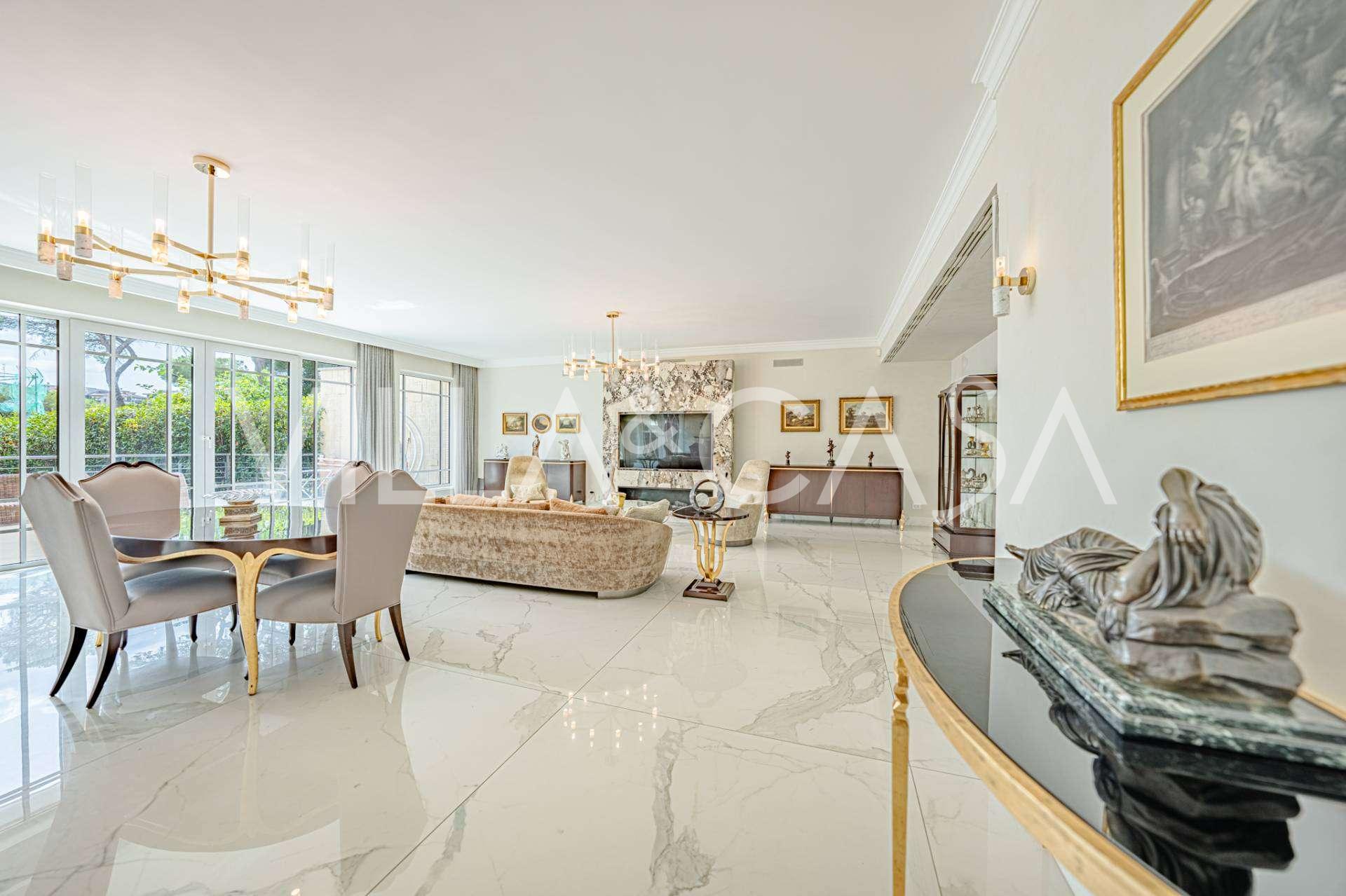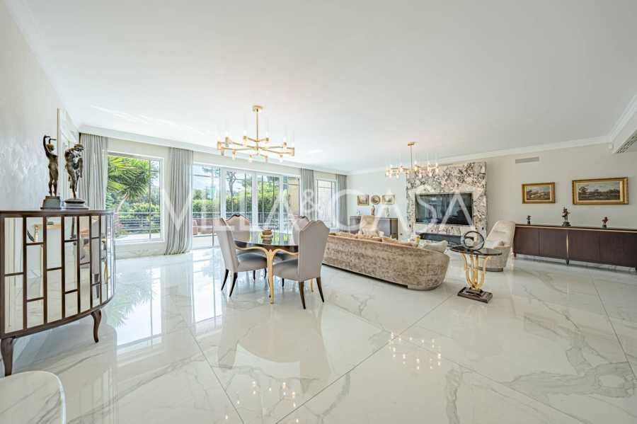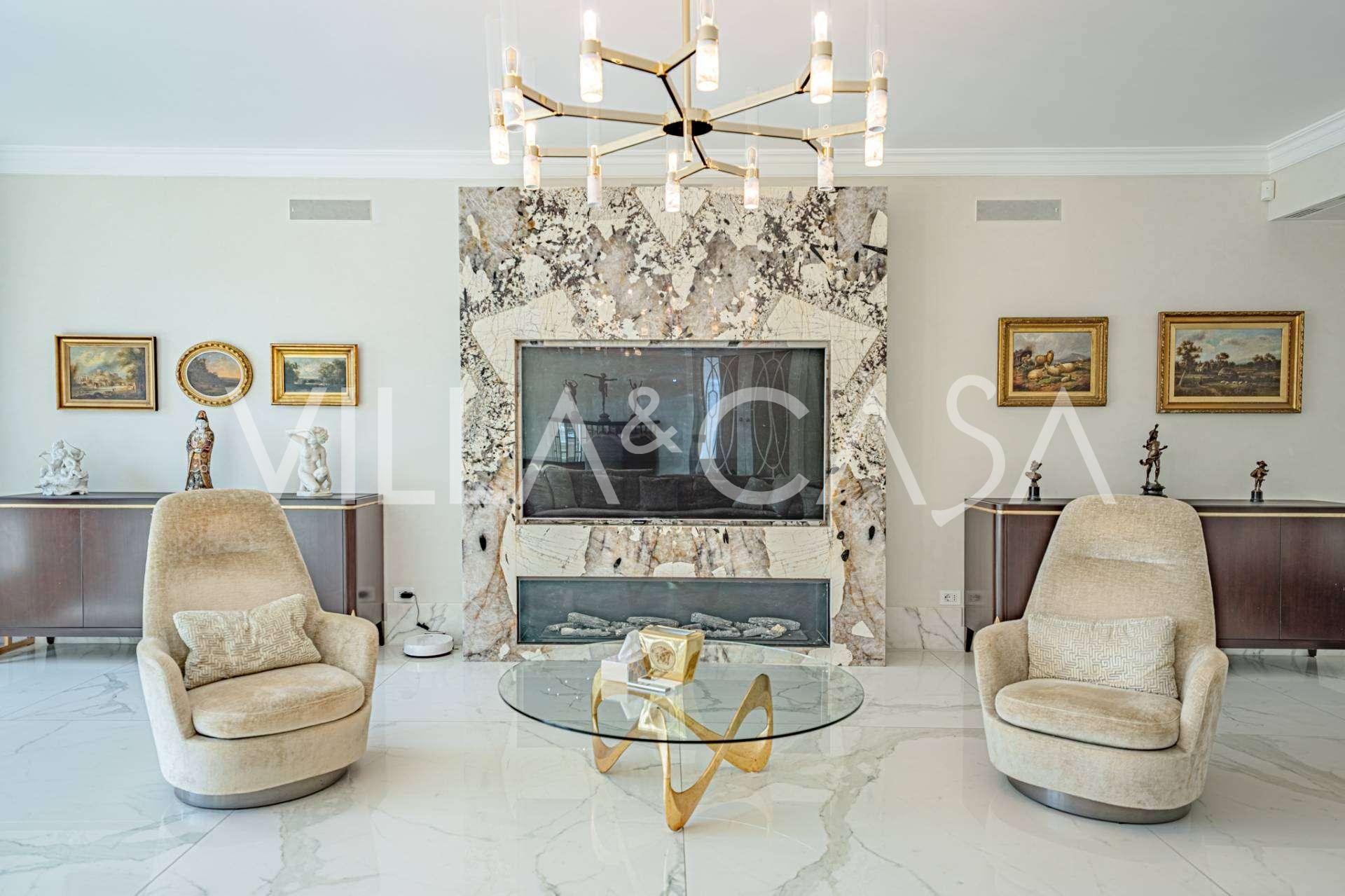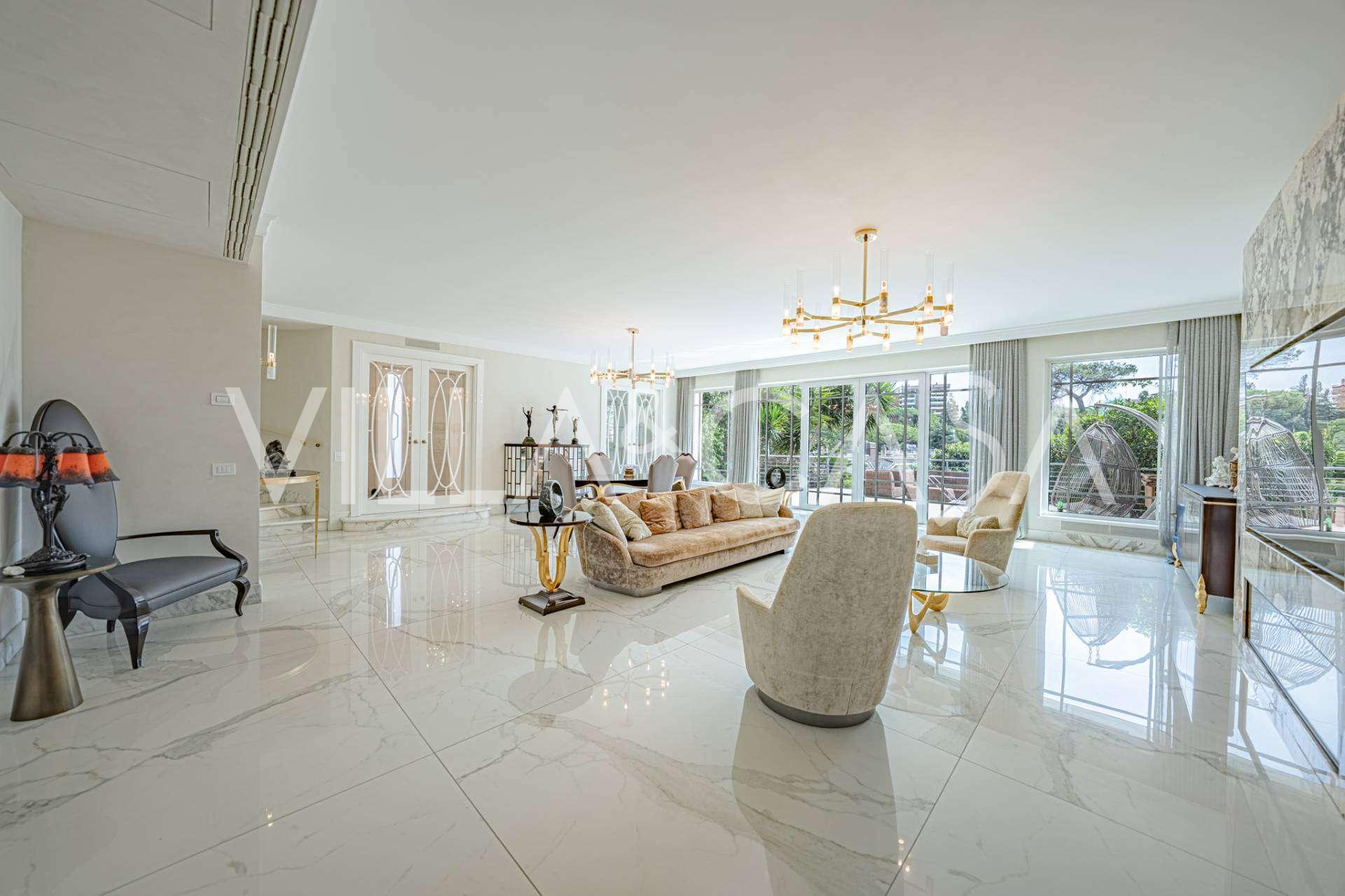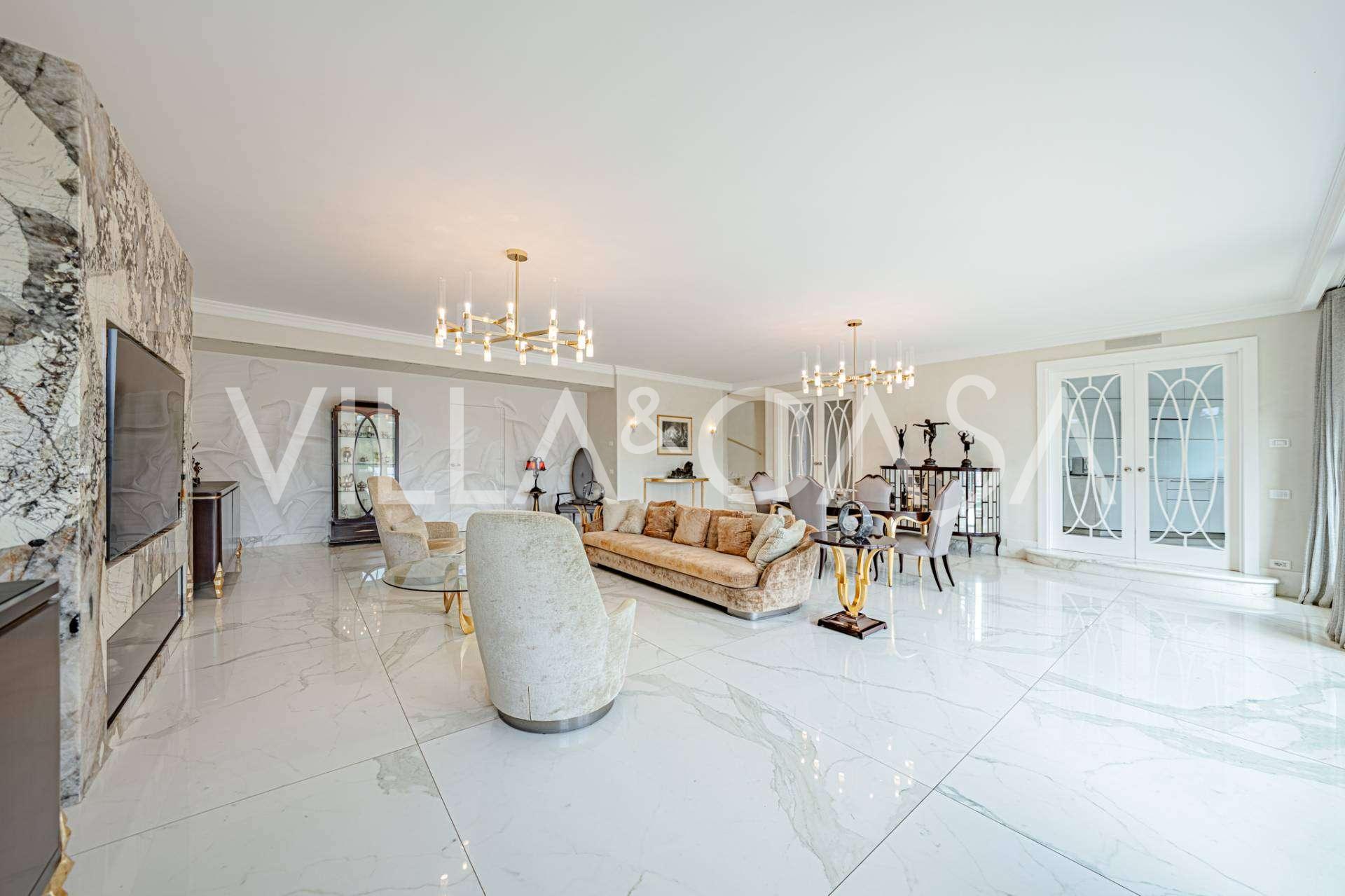 На одной из самых престижных улиц в районе EUR расположена утончённая резиденция, полностью обновлённая в 2020 году. Эта вилла сочетает в себе изысканную эстетику, современный дизайн и высокий уровень комфорта, создавая пространство, подходящее для самых требовательных ценителей.