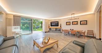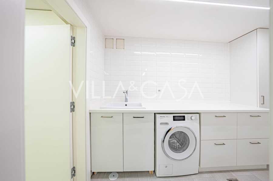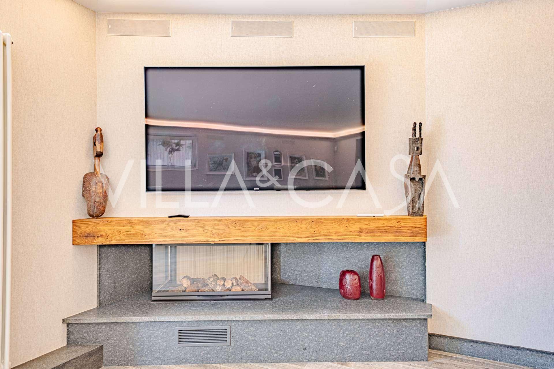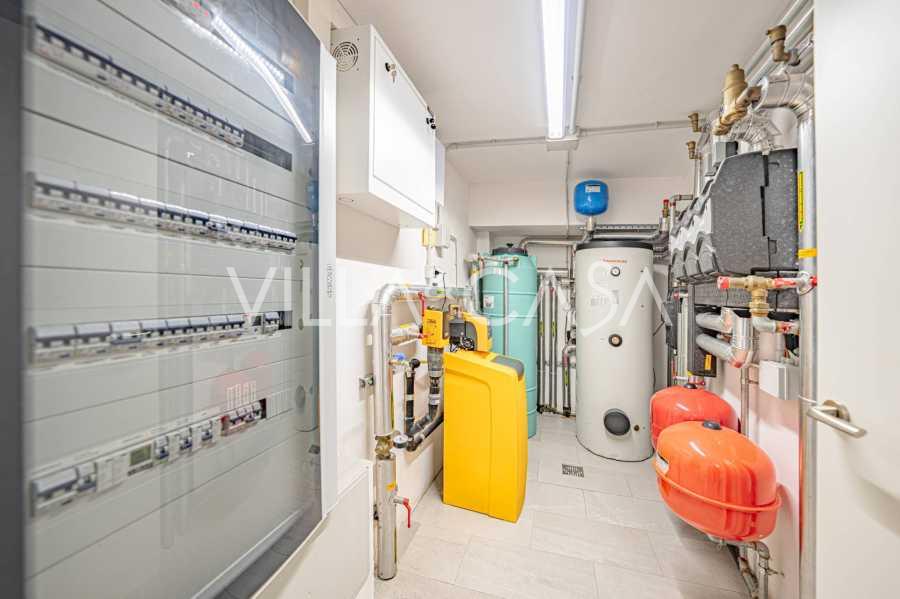Цокольный этаж: эксклюзивная студия-депенданс с камином, кухней открытого плана и ванной, с выходом на террасу, оборудованную летней кухней и зоной барбекю. Отдельный технический блок с самостоятельным входом.