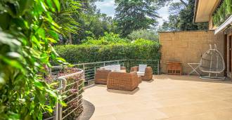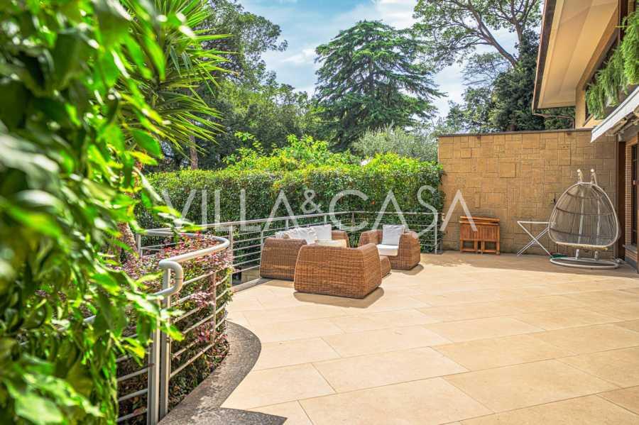 Ландшафтный сад, созданный с особым вниманием к деталям, украшен редкими породами деревьев, среди которых величественная магнолия и столетняя олива. Парадный двор вмещает несколько автомобилей, а также имеется закрытый гараж на одну машину. Идеальное расположение резиденции сочетает редкую тишину и стратегическое местоположение: в шаговой доступности находятся основные сервисы и удобный выезд к парку с озером EUR, а также к проспектам Лаурентина и Кристофоро Коломбо. Всего за несколько минут можно добраться до центра Рима.