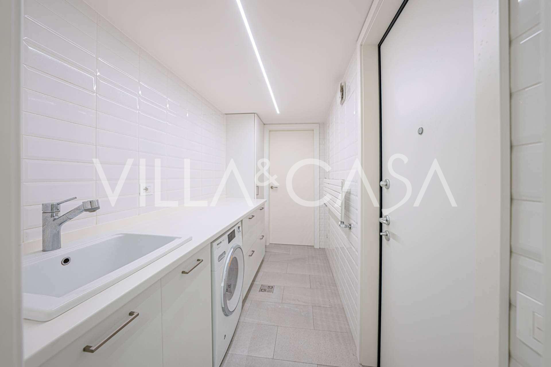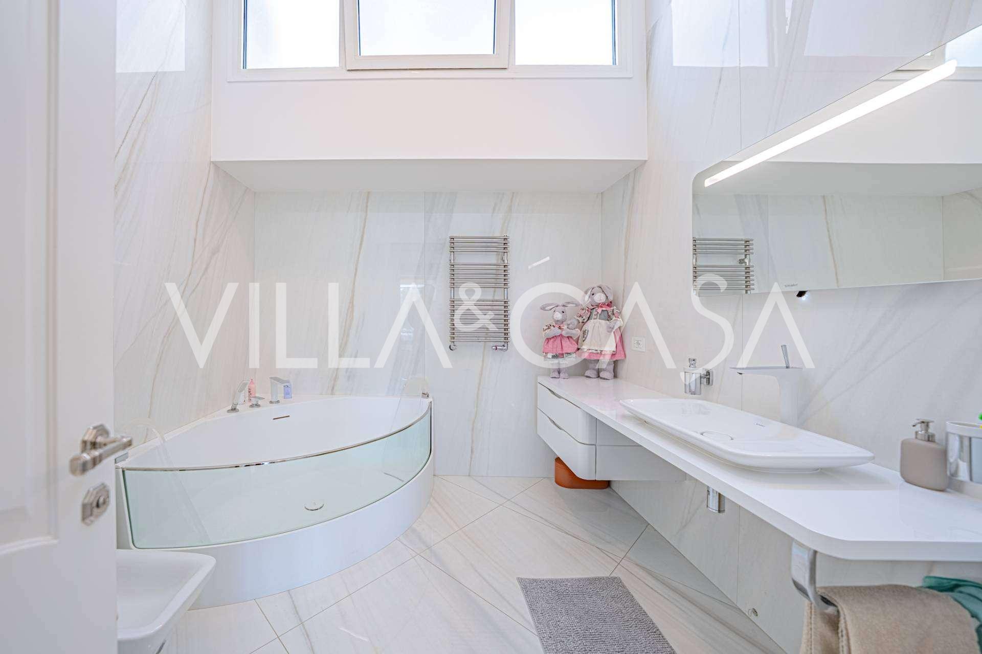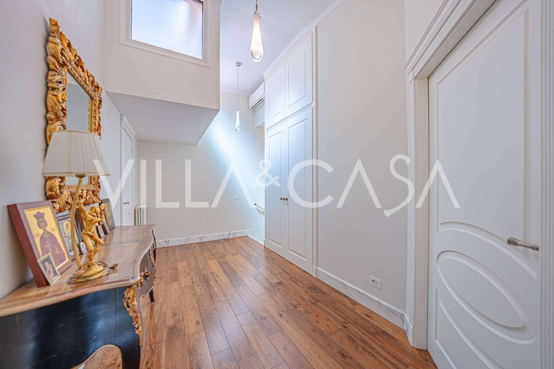 Интерьеры высшего класса включают только лучшие материалы: керамогранит премиум-класса в гостиных и ванных, паркет из широких досок в зоне отдыха, мраморная лестница, окна Schüco с ударопрочным стеклом. Встроенная мебель, выполненная на заказ, является шедевром итальянского столярного искусства. Современные инженерные системы обеспечивают высокую энергоэффективность класса А.