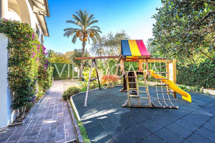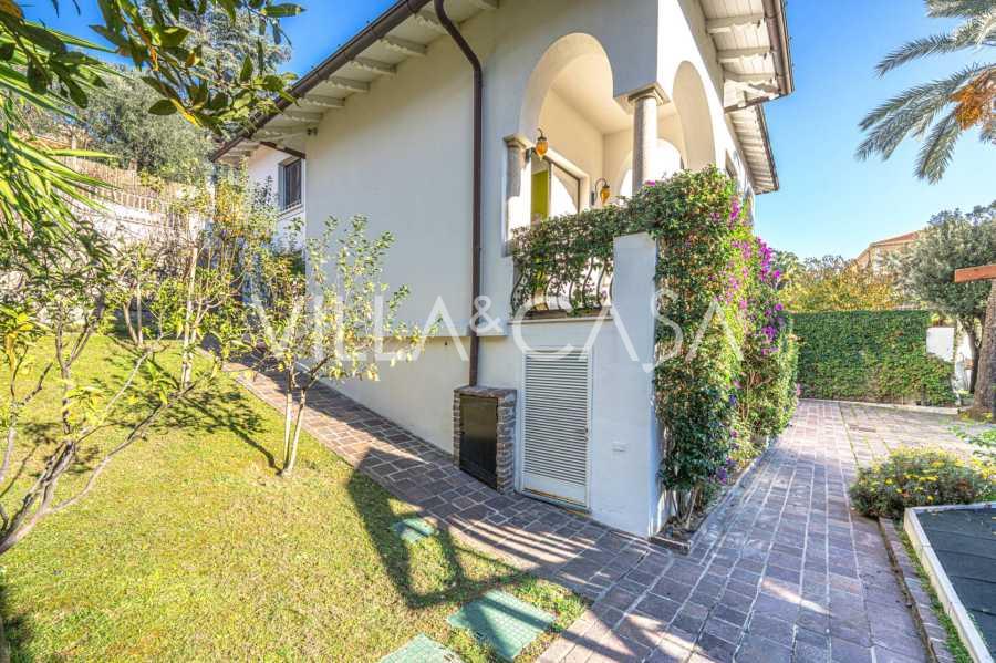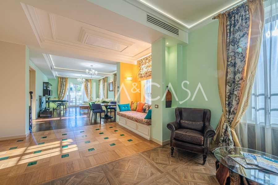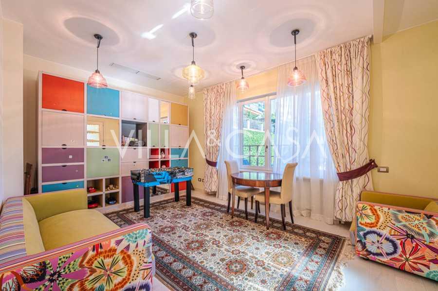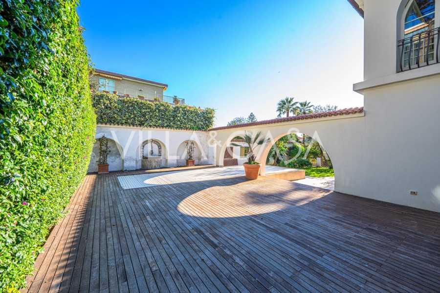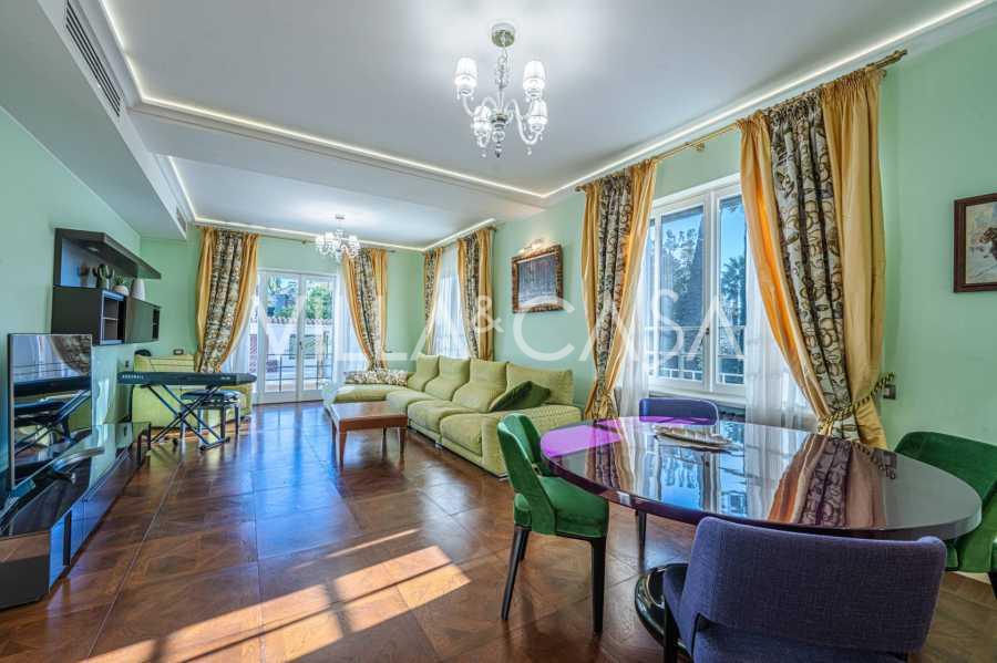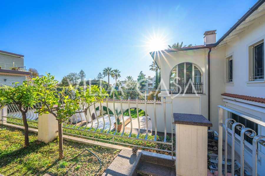 В тихом и уединенном районе Санремо, в нескольких минутах ходьбы от моря, предлагается к продаже вилла площадью 468 м2. Вилла занимает три этажа и включает в себя: