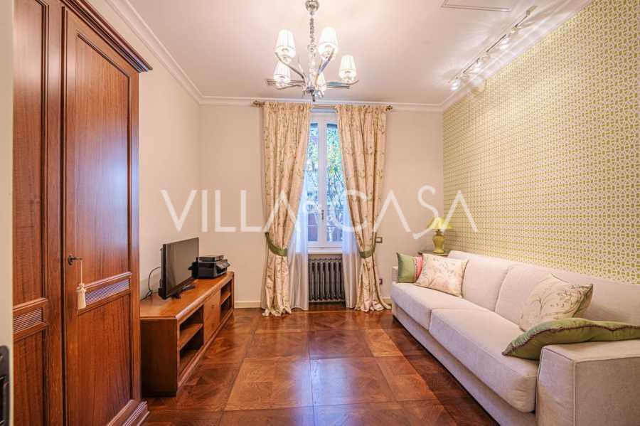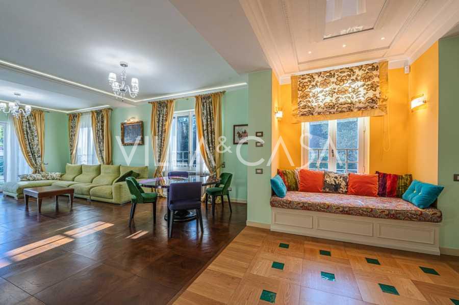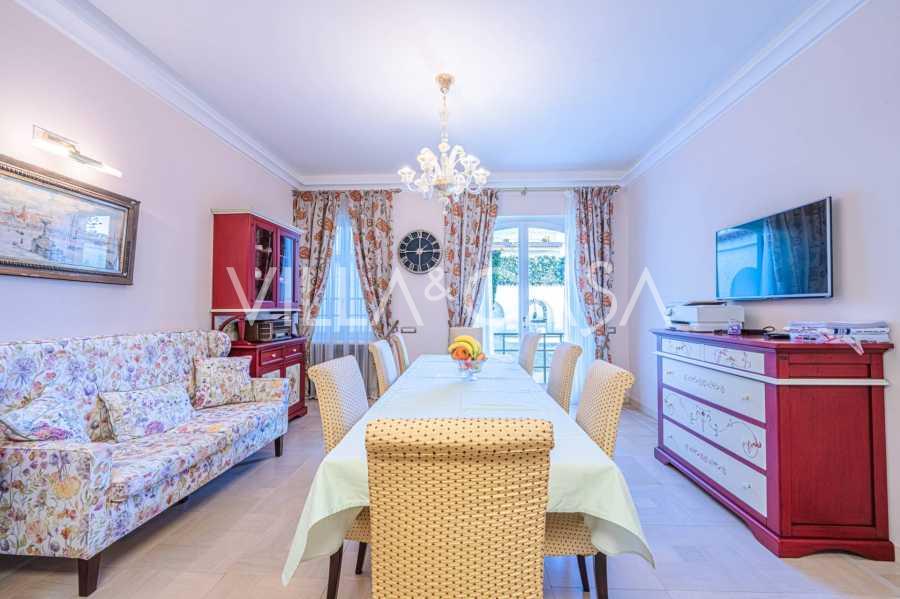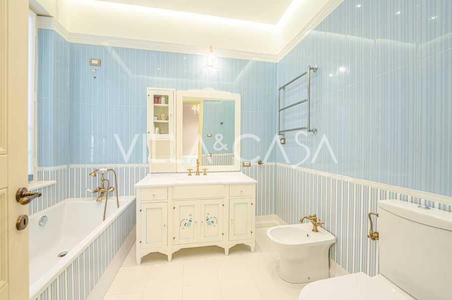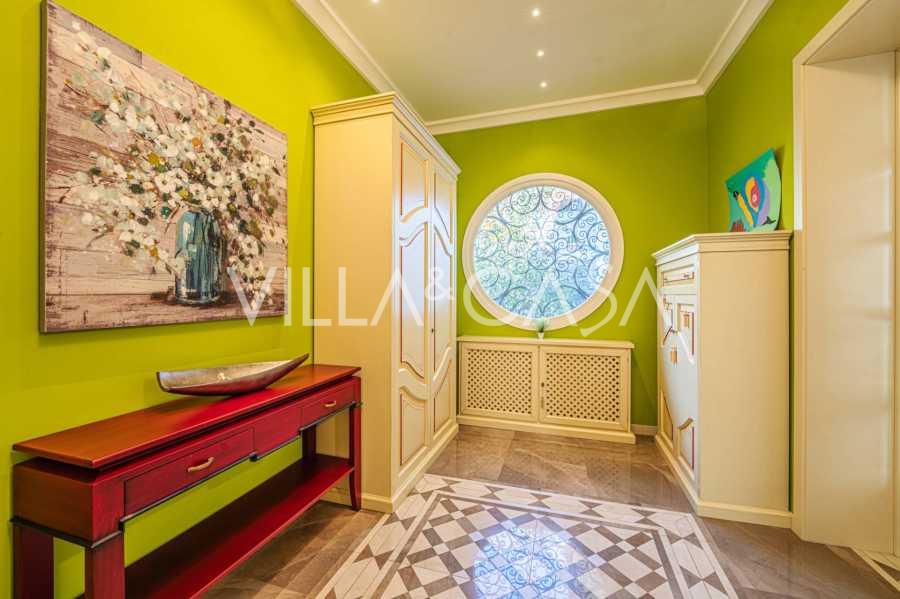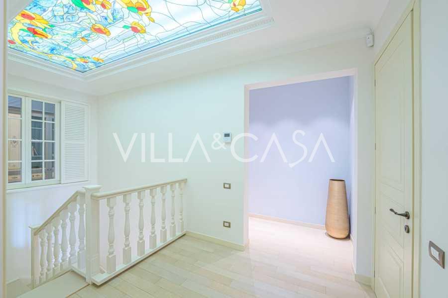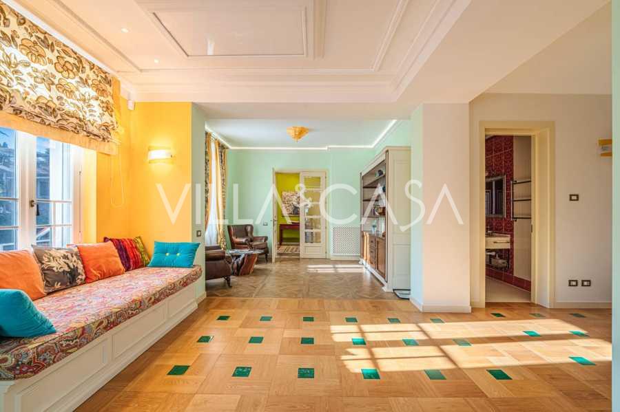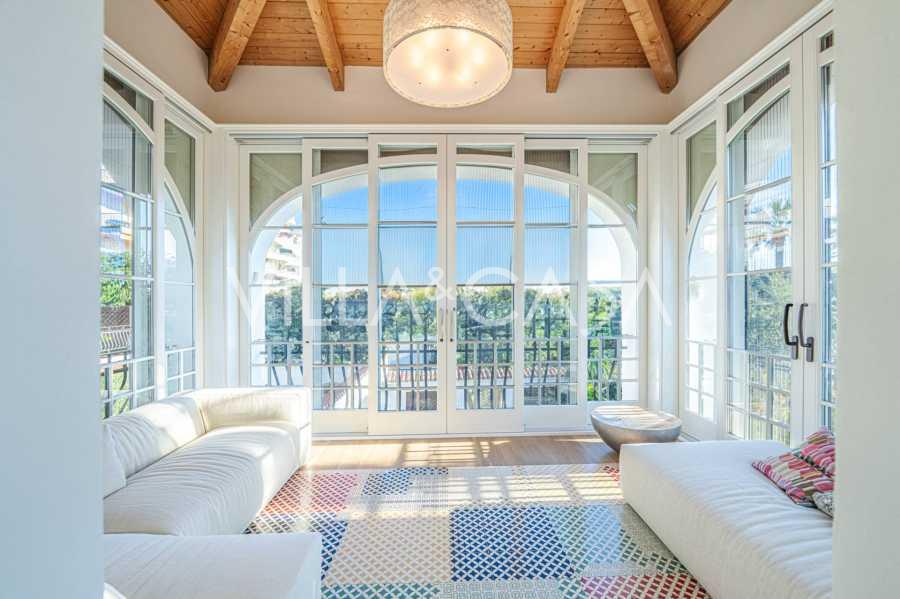 В тихом и уединенном районе Санремо, в нескольких минутах ходьбы от моря, предлагается к продаже вилла площадью 468 м2. Вилла занимает три этажа и включает в себя: