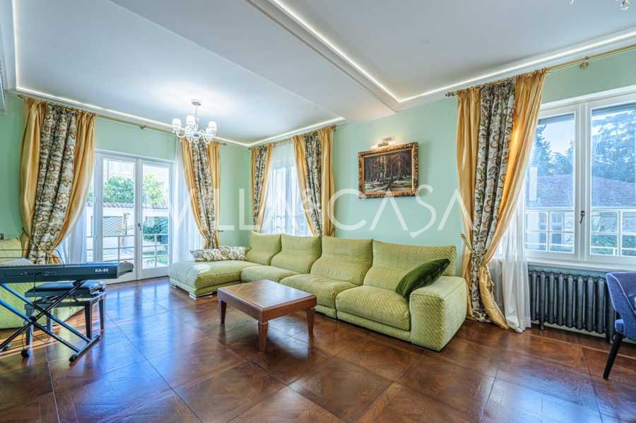Вилла находится в отличном состоянии и не требует дополнительных вложений. В наличии индивидуальное отопление, охранная система, бассейн, сад площадью 1800 м2 с крытой летней кухней и зоной для барбекю, огород и детская игровая площадка. Расстояние до моря составляет всего 400 метров. Имеется гараж на 27 м2 и парковка на три автомобиля.