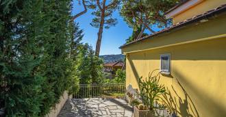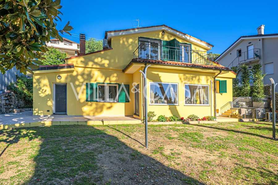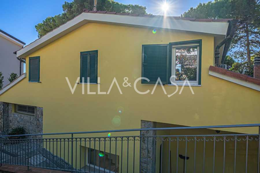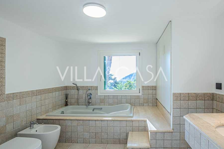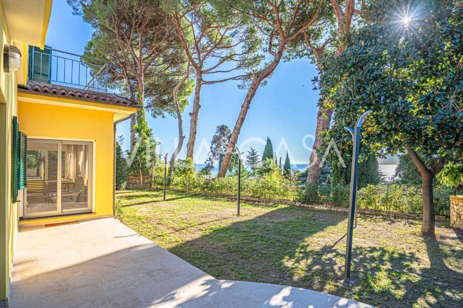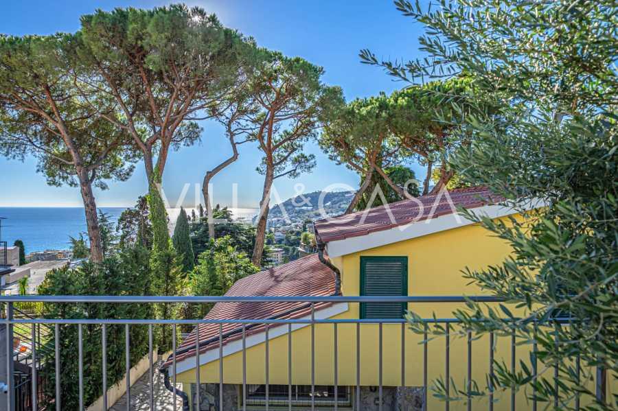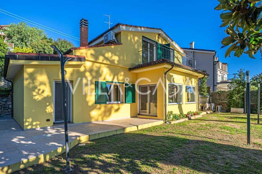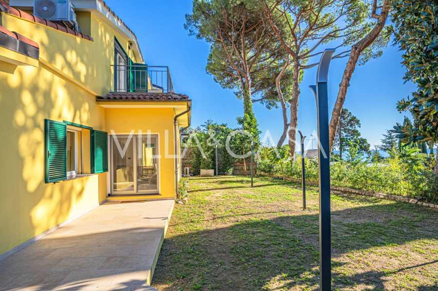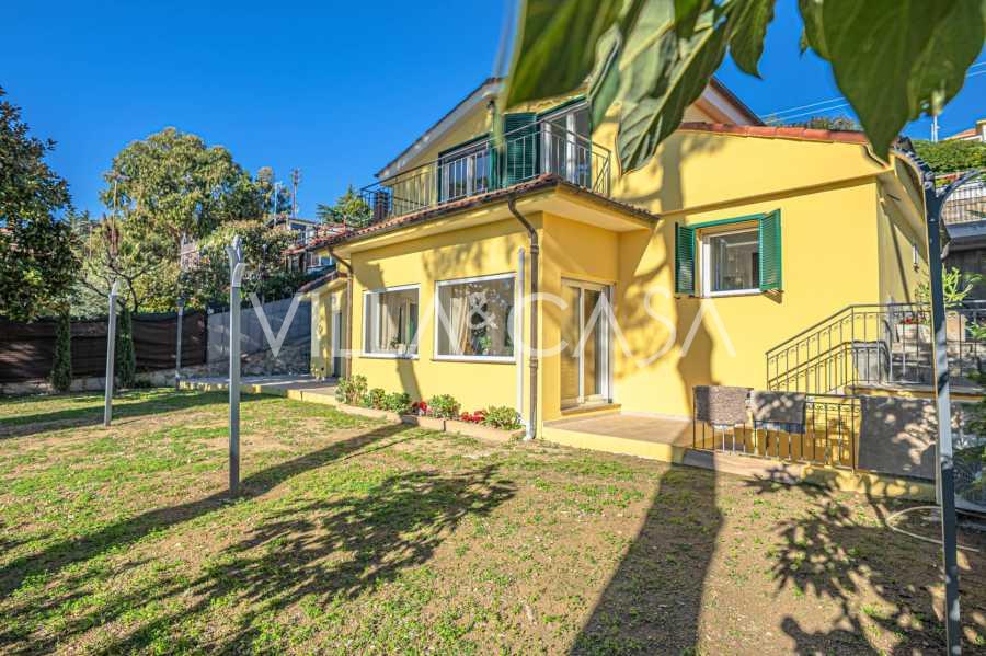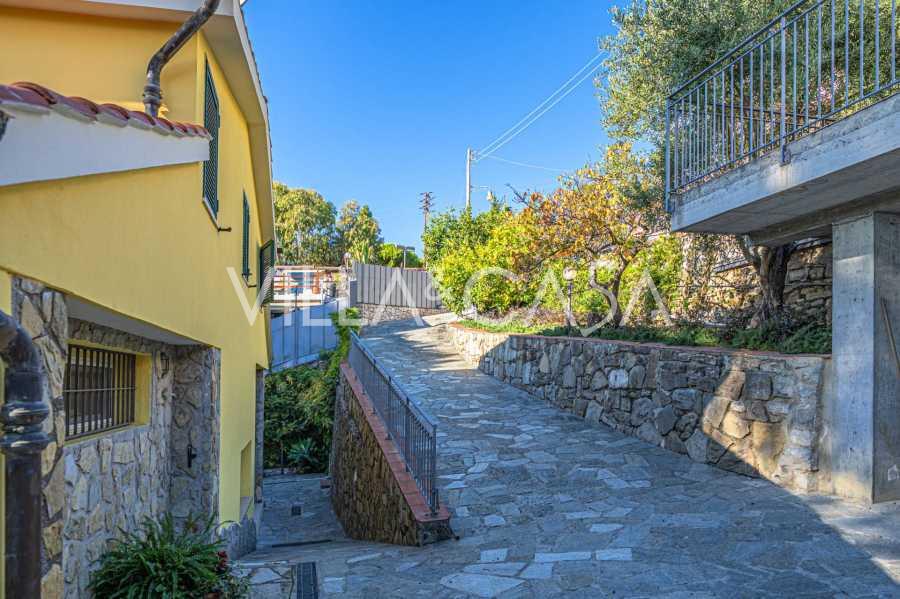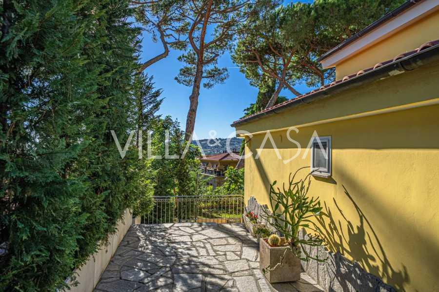 Вилла находится в спокойной жилой зоне, возвышаясь на трёх этажах, окружена ухоженным частным садом, откуда открываются завораживающие виды на синее море и зелёные склоны побережья.