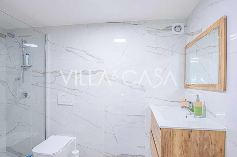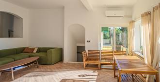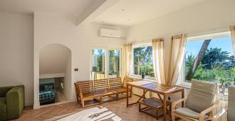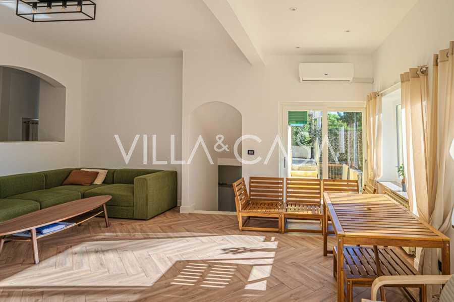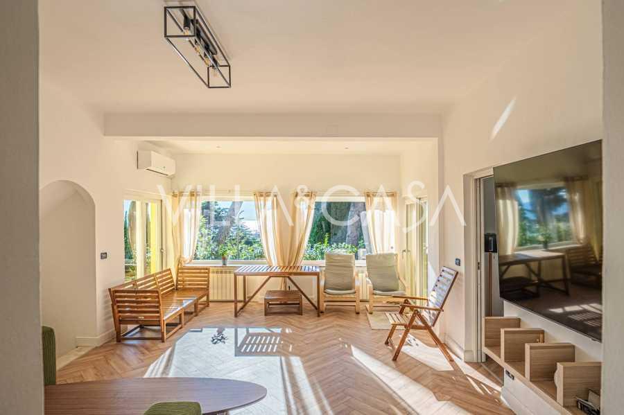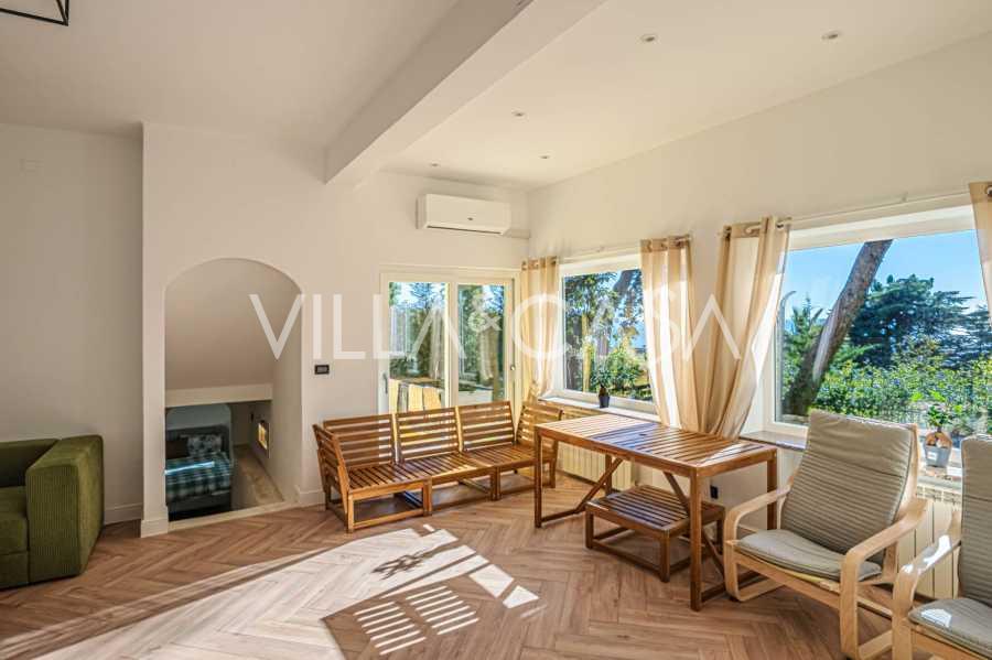 Территория виллы утопает в зелени: ухоженный сад с декоративными растениями и цветами, зона отдыха на свежем воздухе, а также частная парковка на три машины. Недавняя реновация добавила дому современность и свежесть, сохраняя при этом средиземноморскую элегантность.