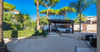 Территория вокруг утопает в зелени, создавая атмосферу уединённого оазиса: ухоженный сад, уютная зона для барбекю, идеально подходящая для приёма гостей, и просторная частная парковка на четыре автомобиля. Все детали пространства продуманы для максимального комфорта и наслаждения жизнью у моря.