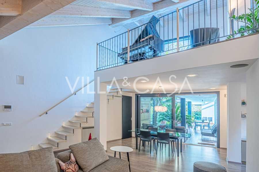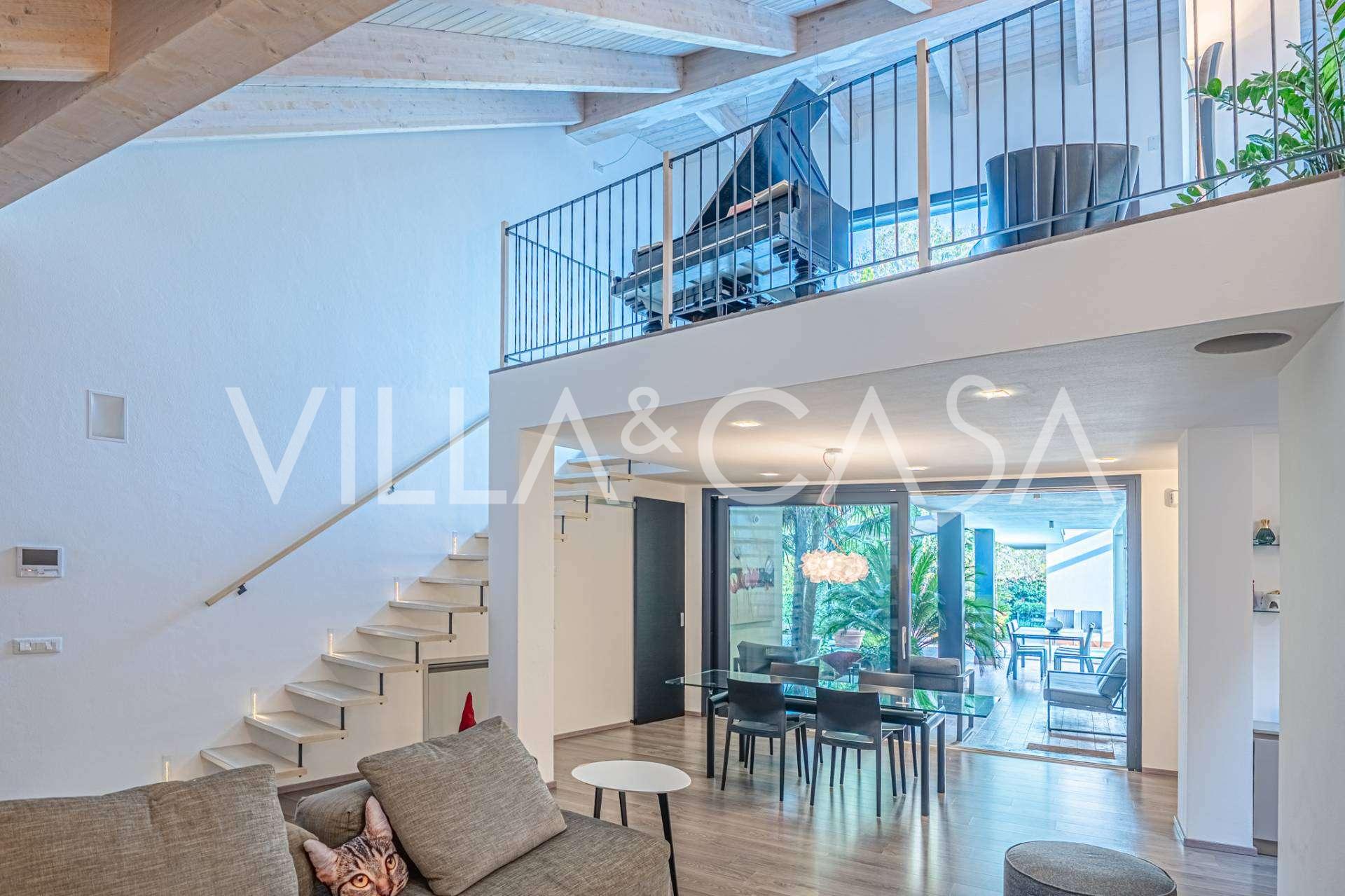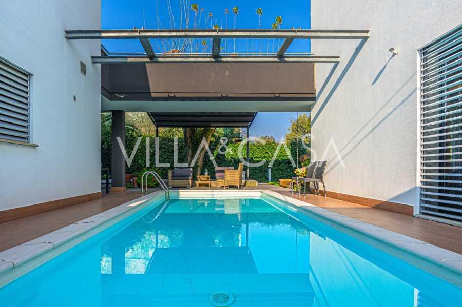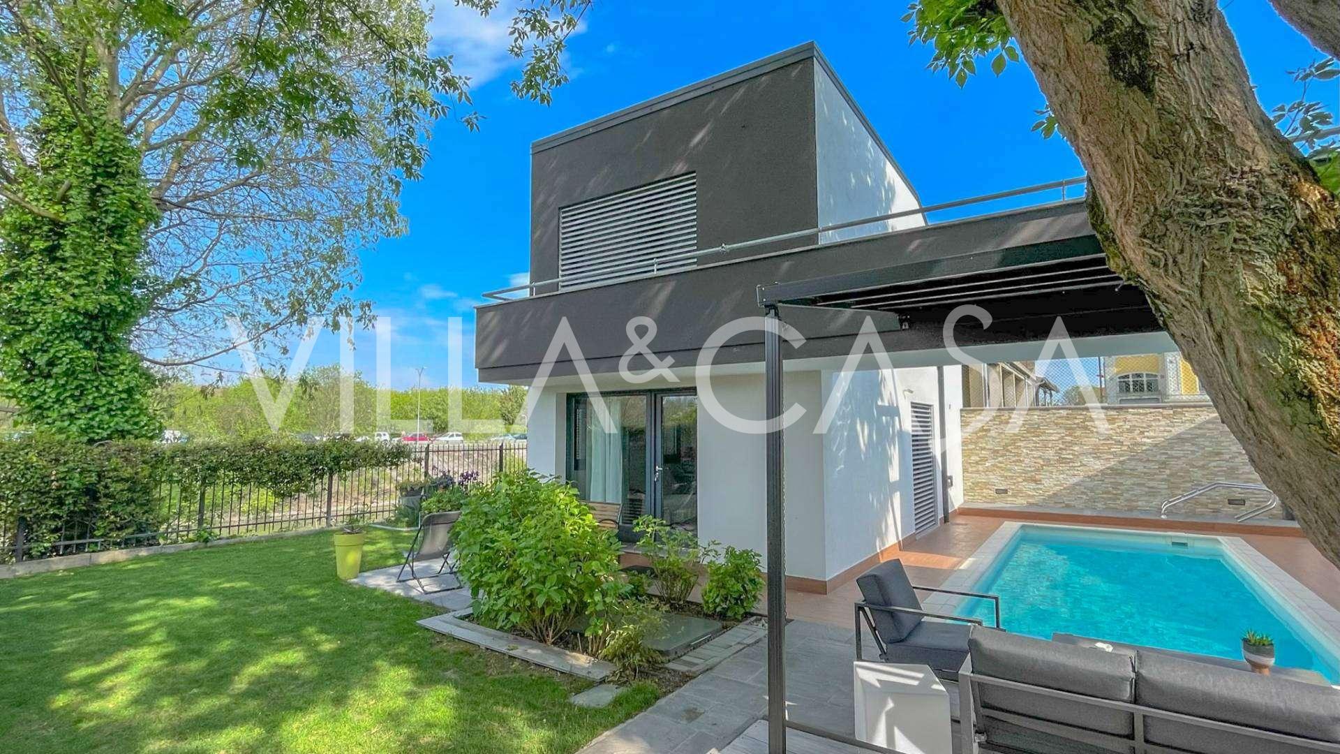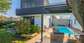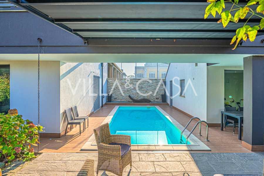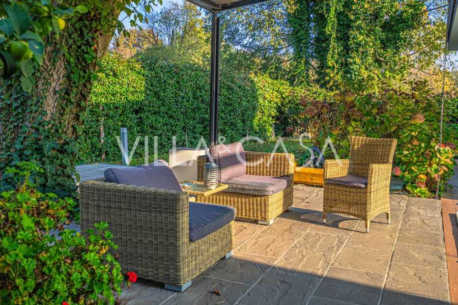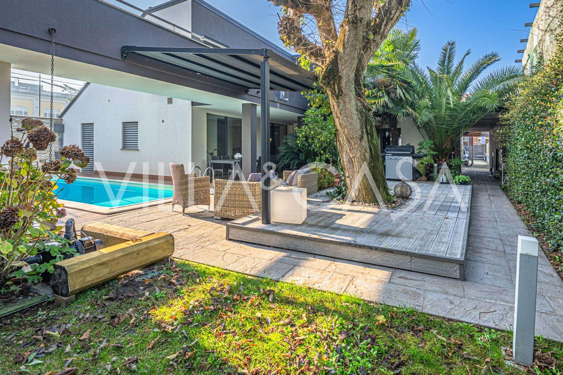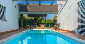 В самом центре Феррары, среди ухоженной зелени, продаётся современный дом, построенный в 2014 году, общей площадью около 360 м². Он разделён на две автономные части: основной дом и отдельный гостевой домик. Обе части объединяет просторная общая терраса на втором этаже, создающая цельное гармоничное пространство и открывающая вид на сад и зону отдыха.