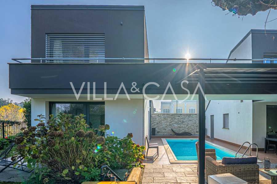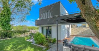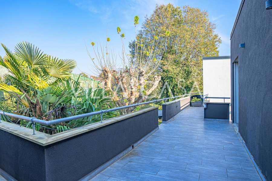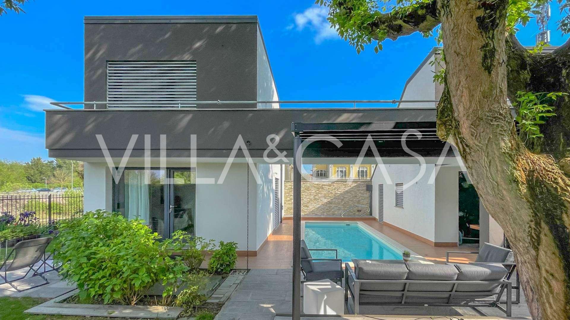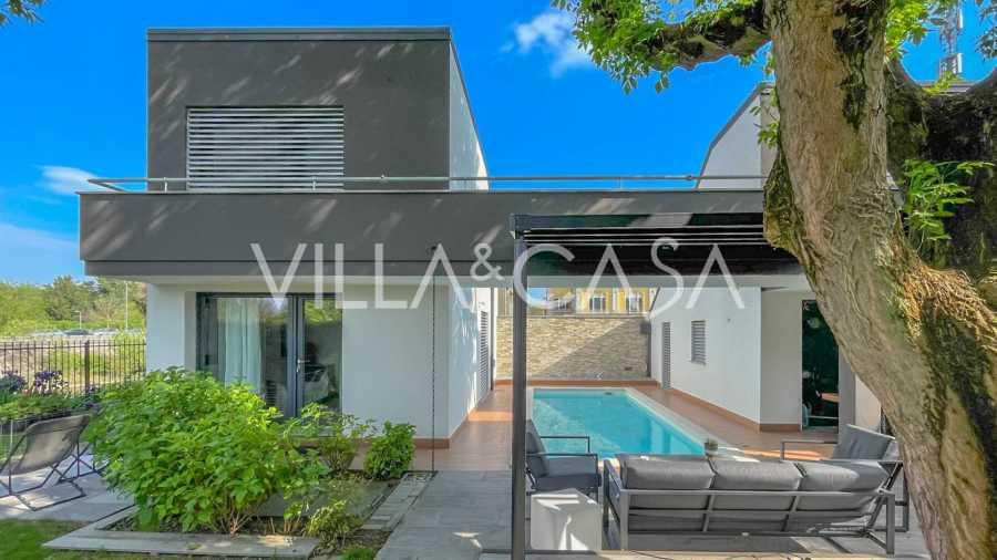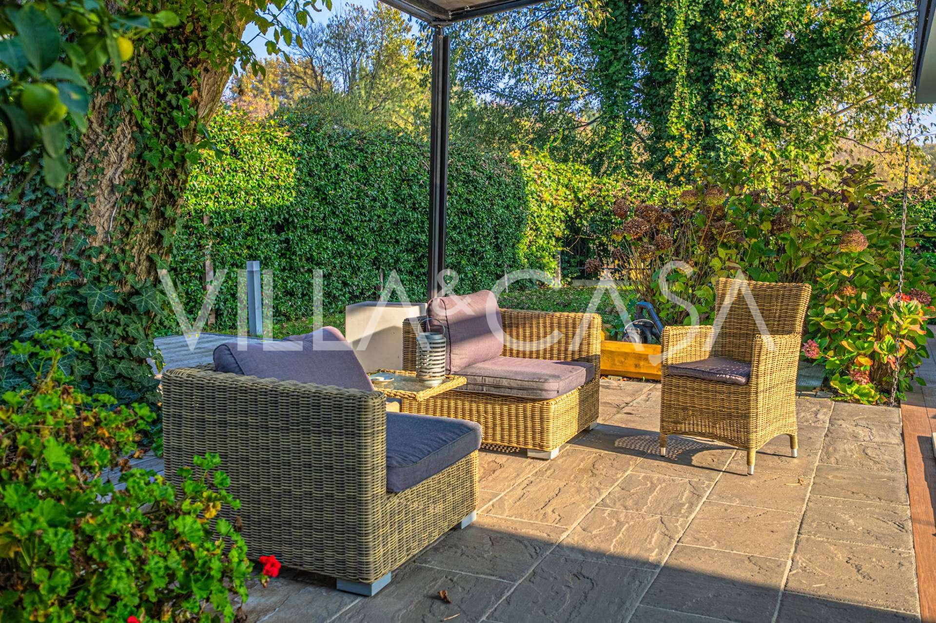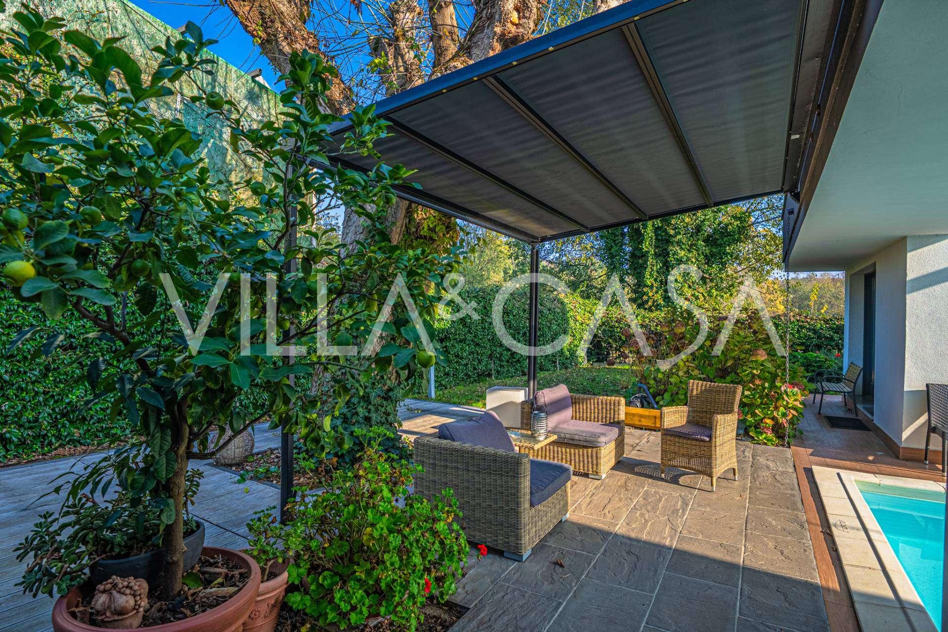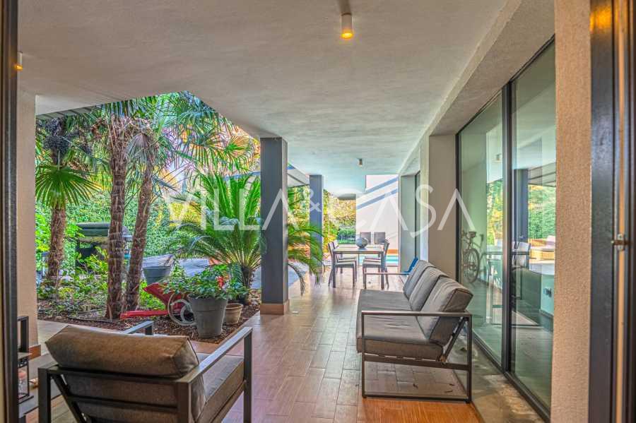 В самом центре Феррары, среди ухоженной зелени, продаётся современный дом, построенный в 2014 году, общей площадью около 360 м². Он разделён на две автономные части: основной дом и отдельный гостевой домик. Обе части объединяет просторная общая терраса на втором этаже, создающая цельное гармоничное пространство и открывающая вид на сад и зону отдыха.
