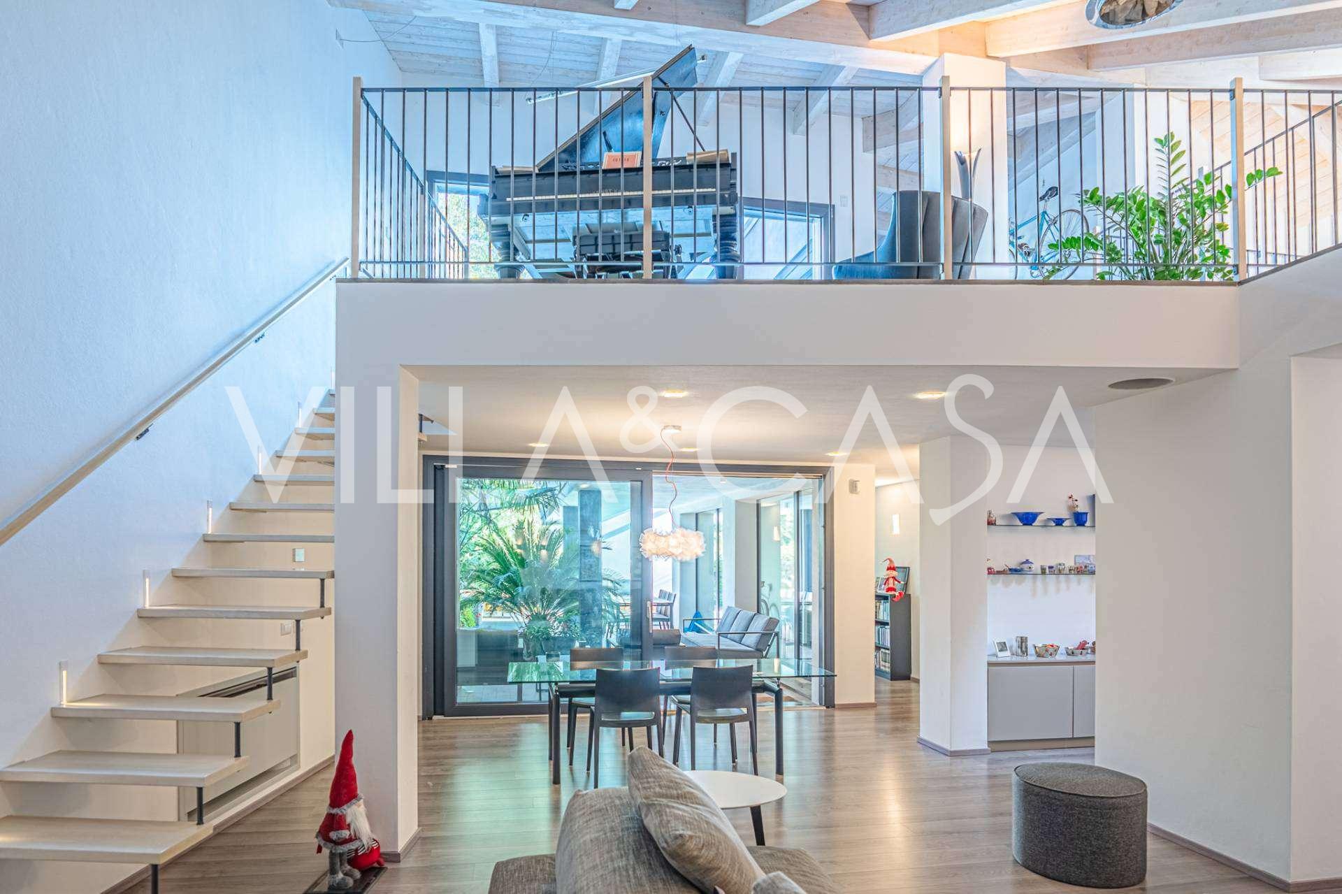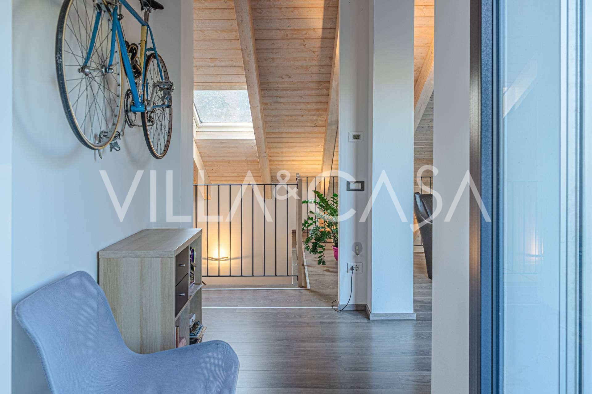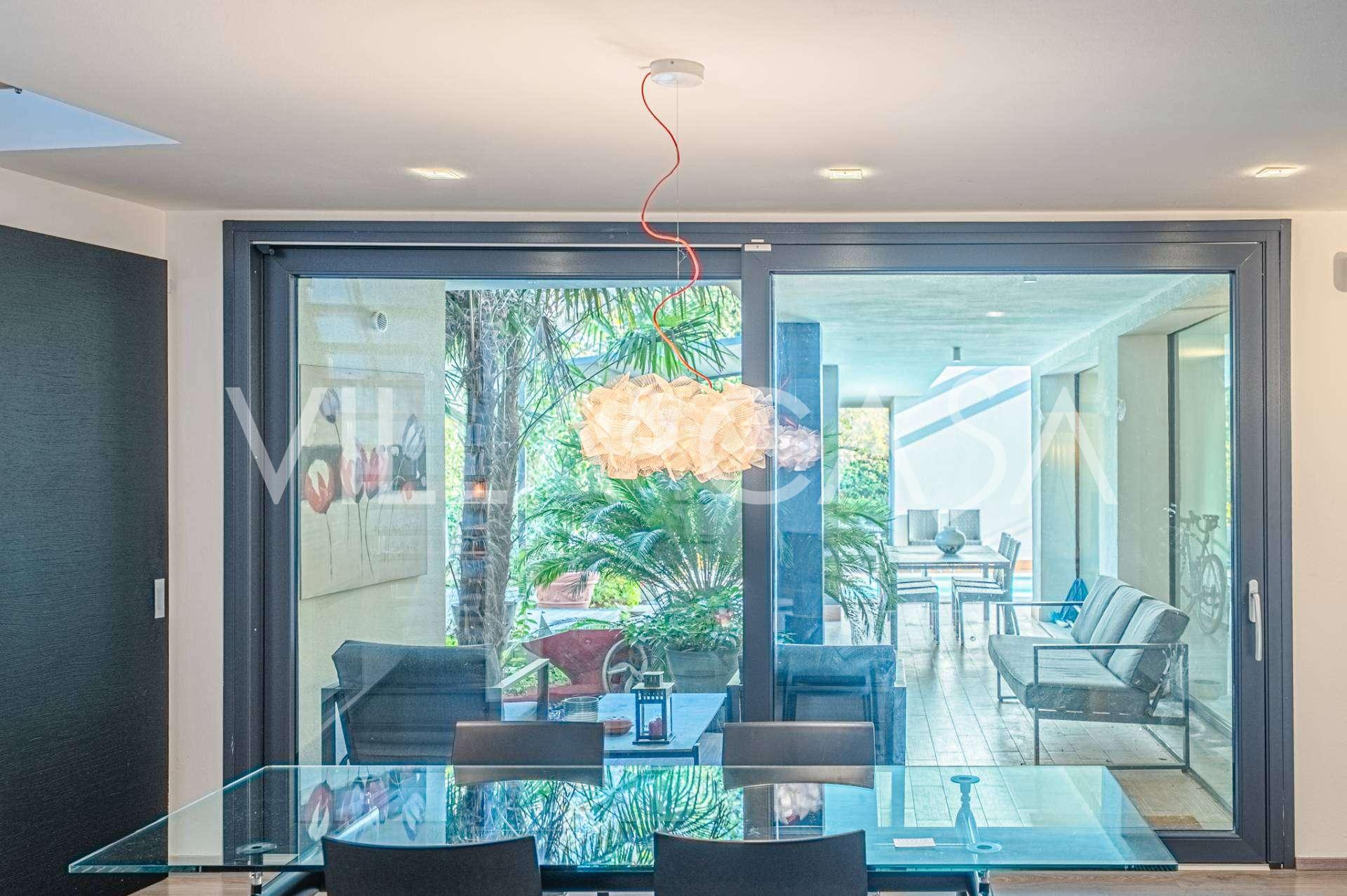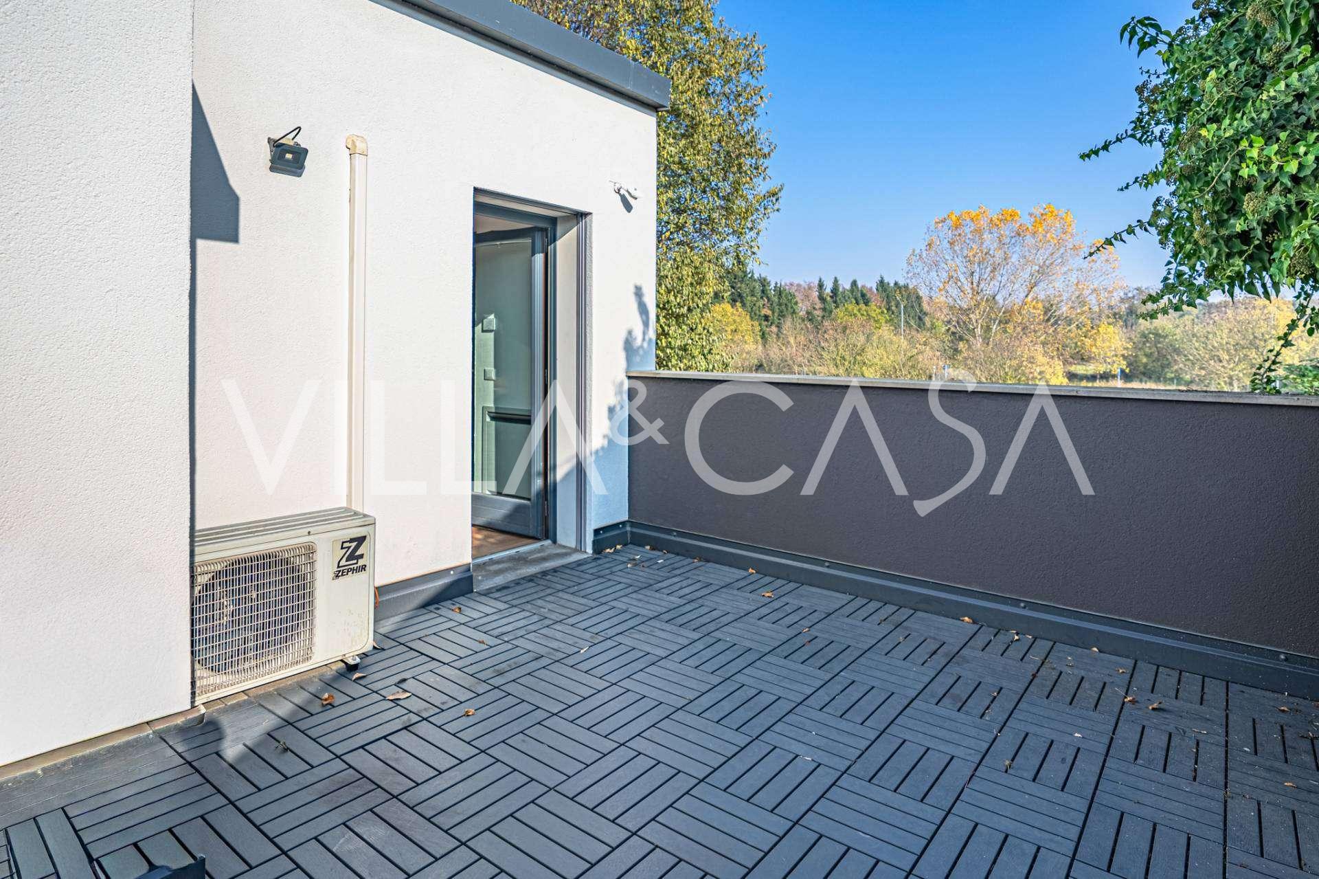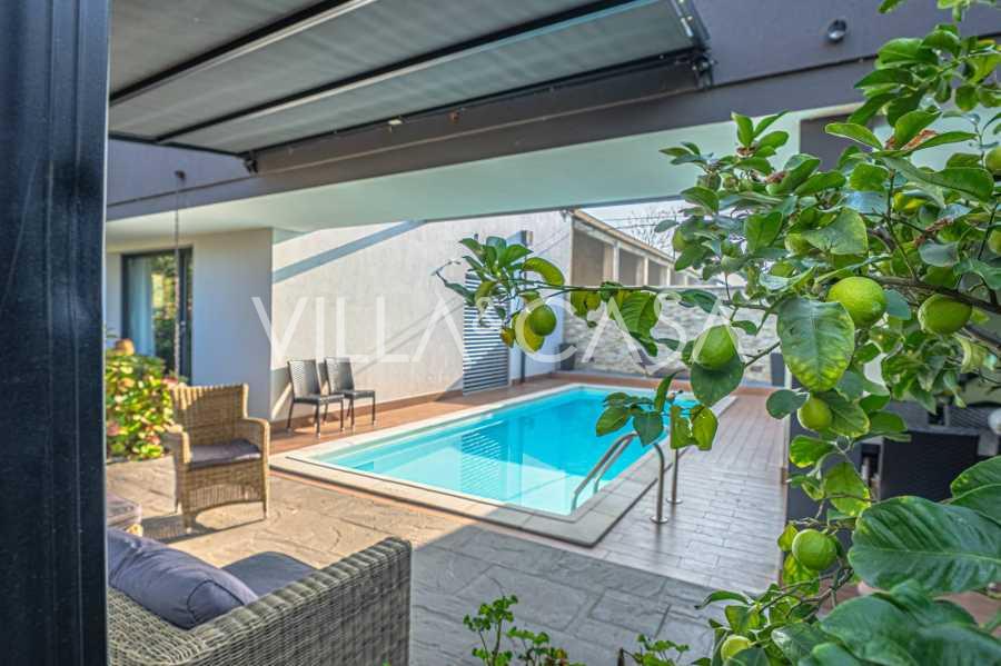 В самом центре Феррары, среди ухоженной зелени, продаётся современный дом, построенный в 2014 году, общей площадью около 360 м². Он разделён на две автономные части: основной дом и отдельный гостевой домик. Обе части объединяет просторная общая терраса на втором этаже, создающая цельное гармоничное пространство и открывающая вид на сад и зону отдыха.