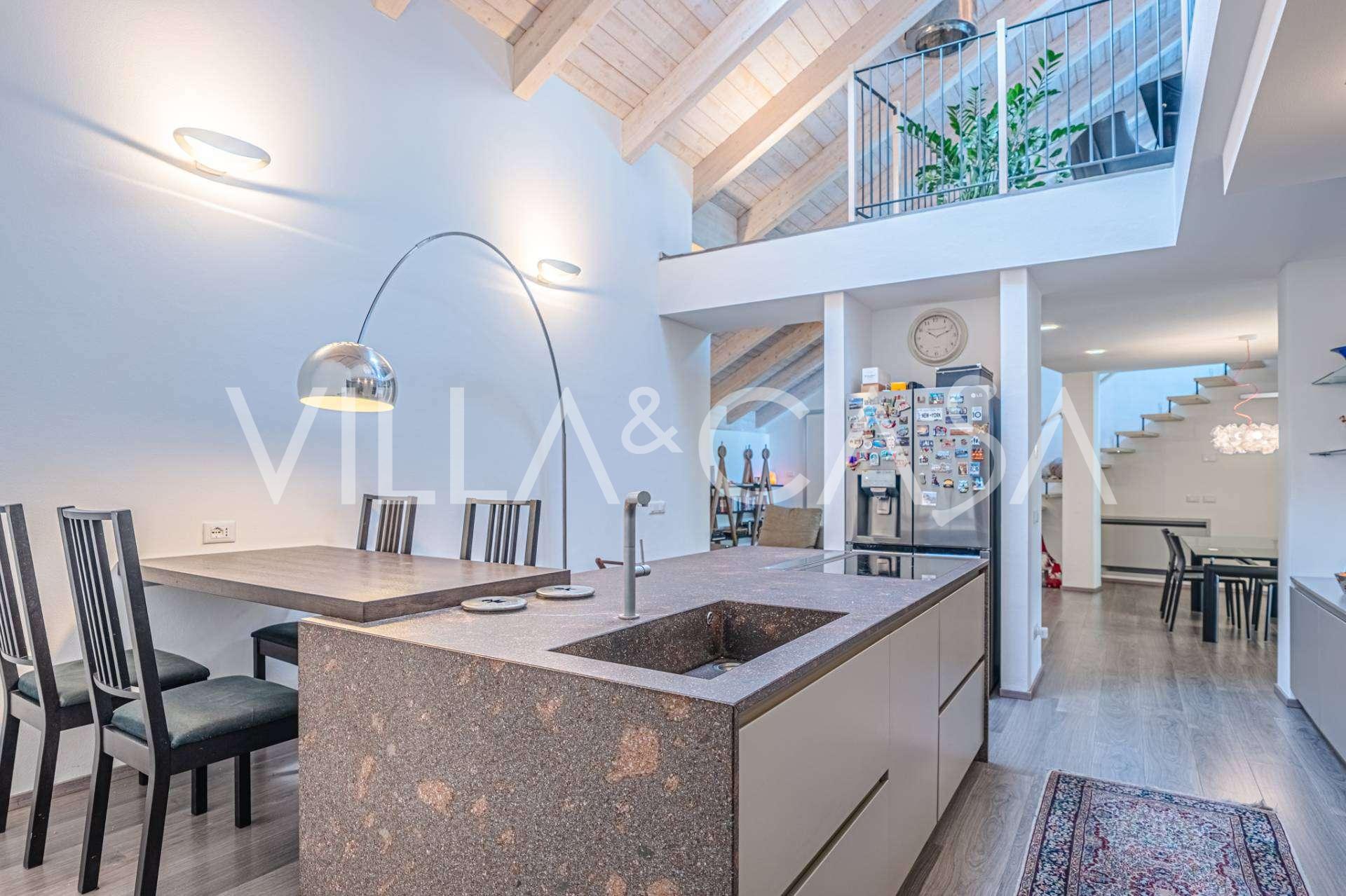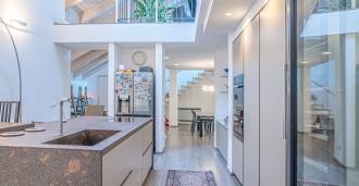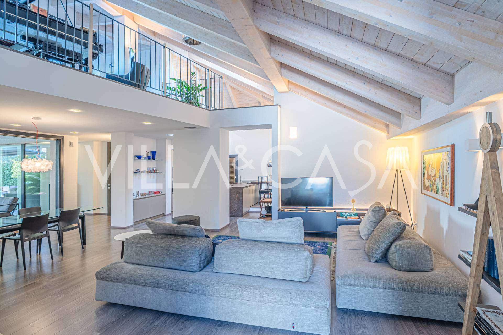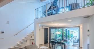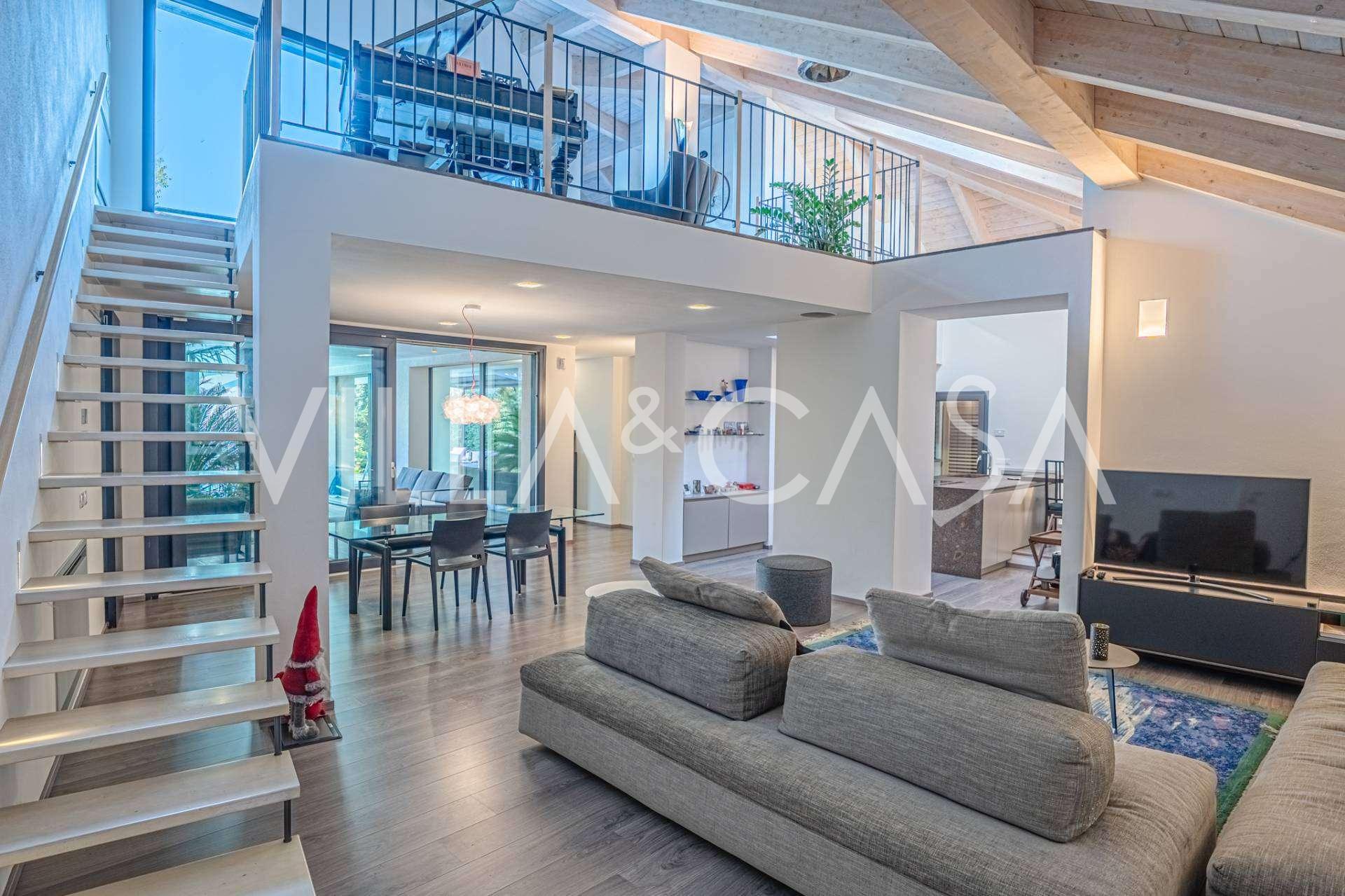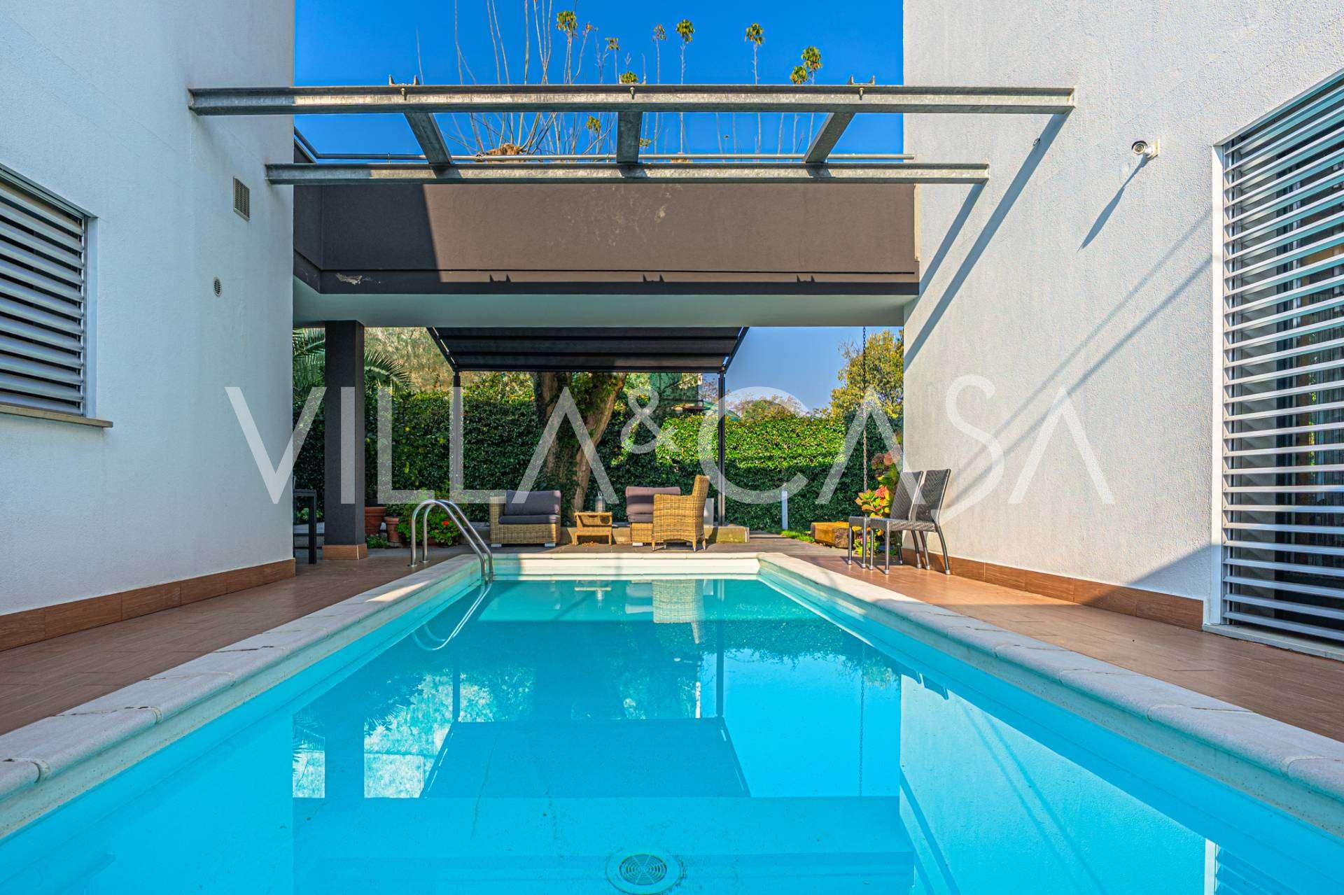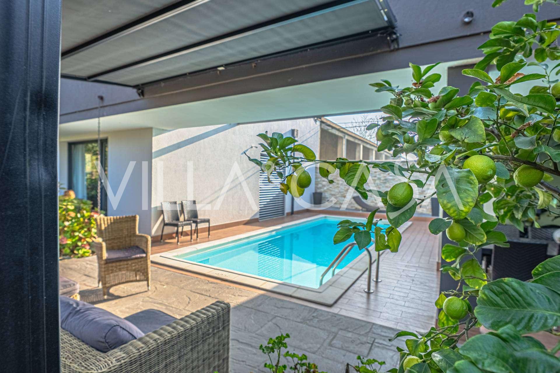 В самом центре Феррары, среди ухоженной зелени, продаётся современный дом, построенный в 2014 году, общей площадью около 360 м². Он разделён на две автономные части: основной дом и отдельный гостевой домик. Обе части объединяет просторная общая терраса на втором этаже, создающая цельное гармоничное пространство и открывающая вид на сад и зону отдыха.