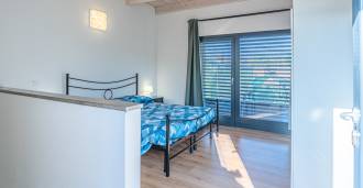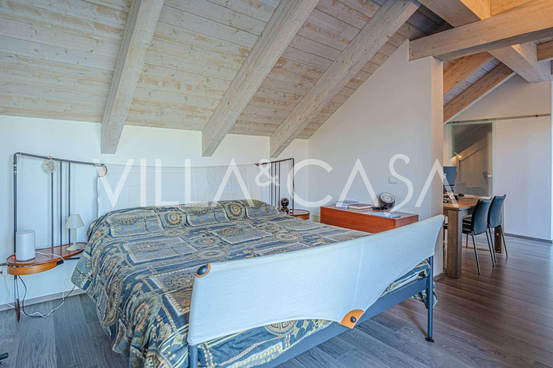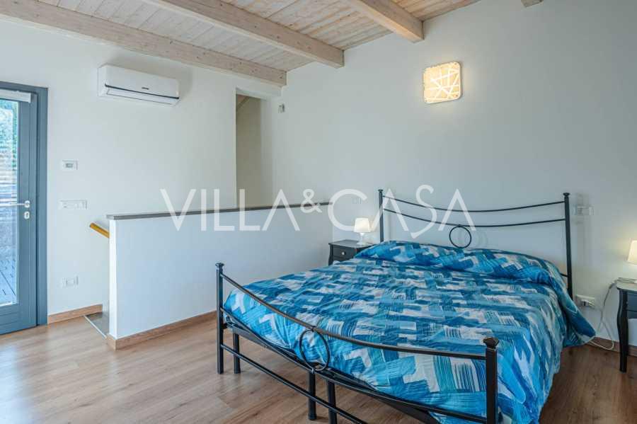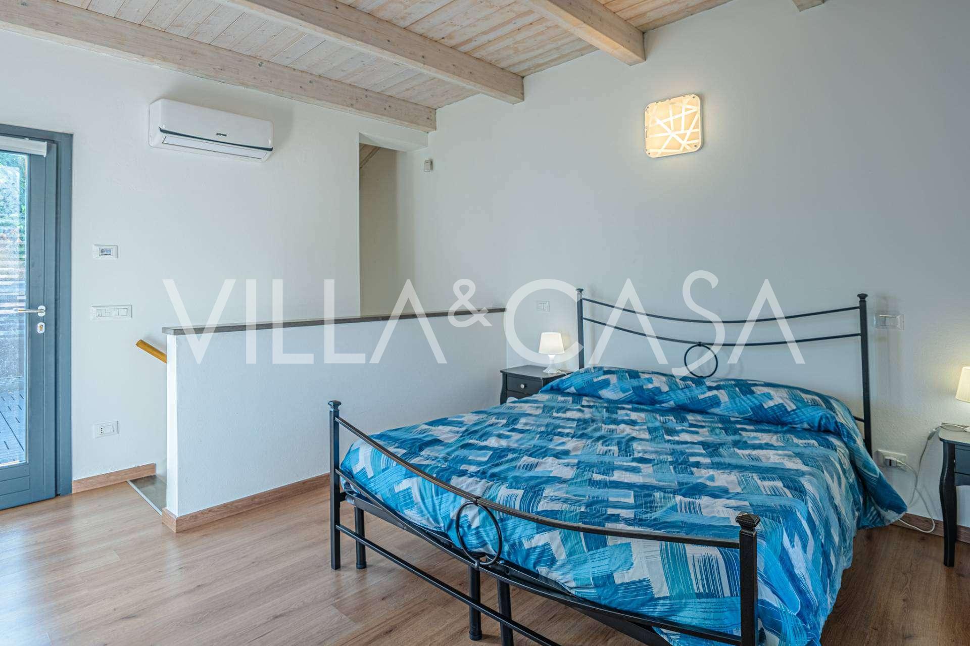 Второй этаж: уютная спальня, ванная комната, ещё одна просторная терраса с видом на сад и бассейн.