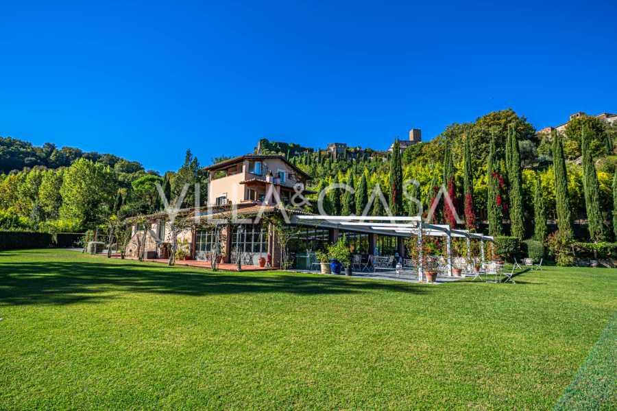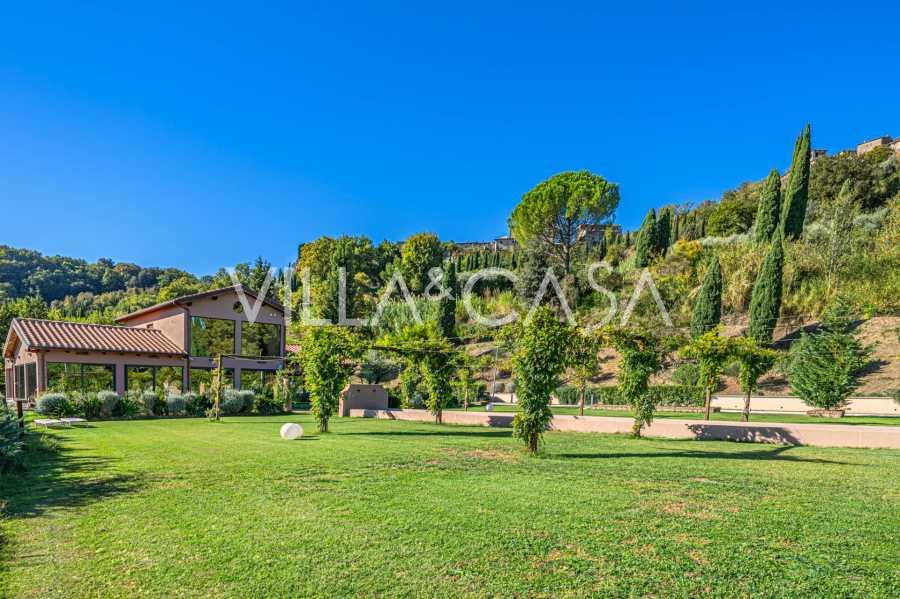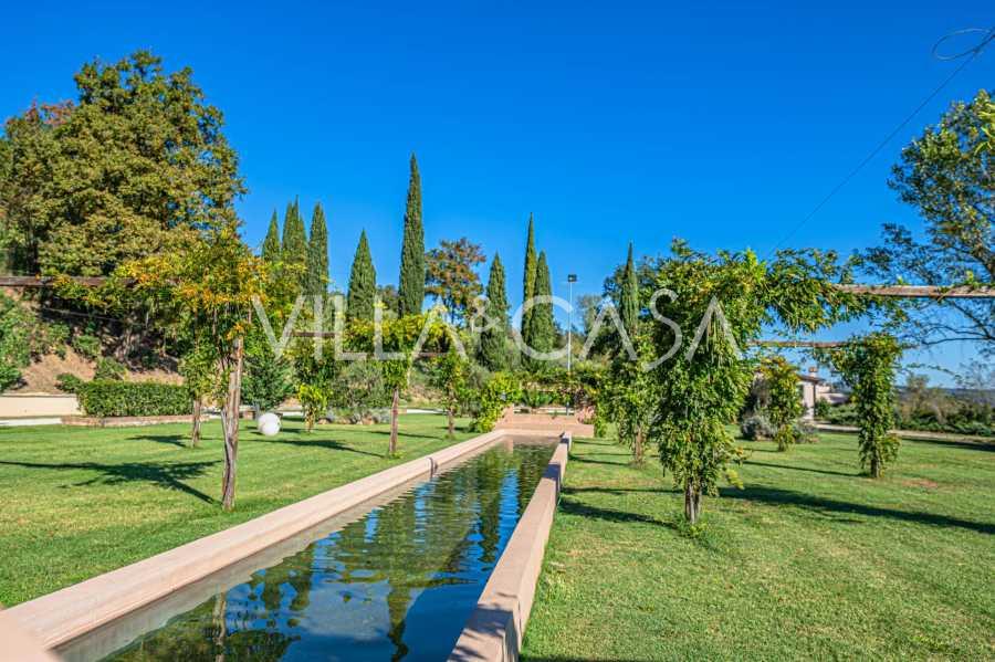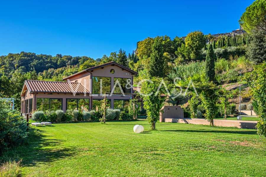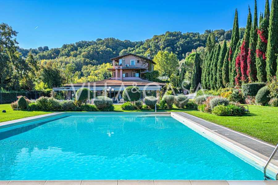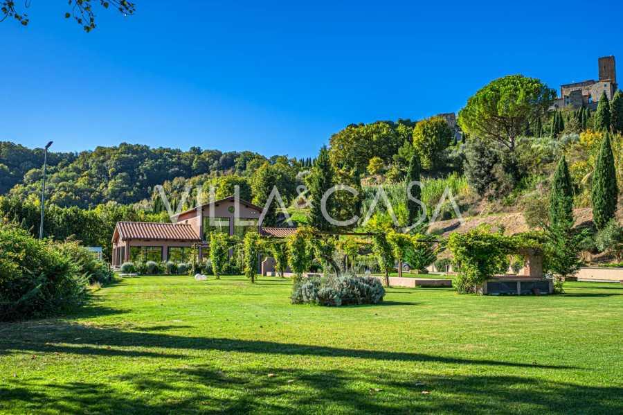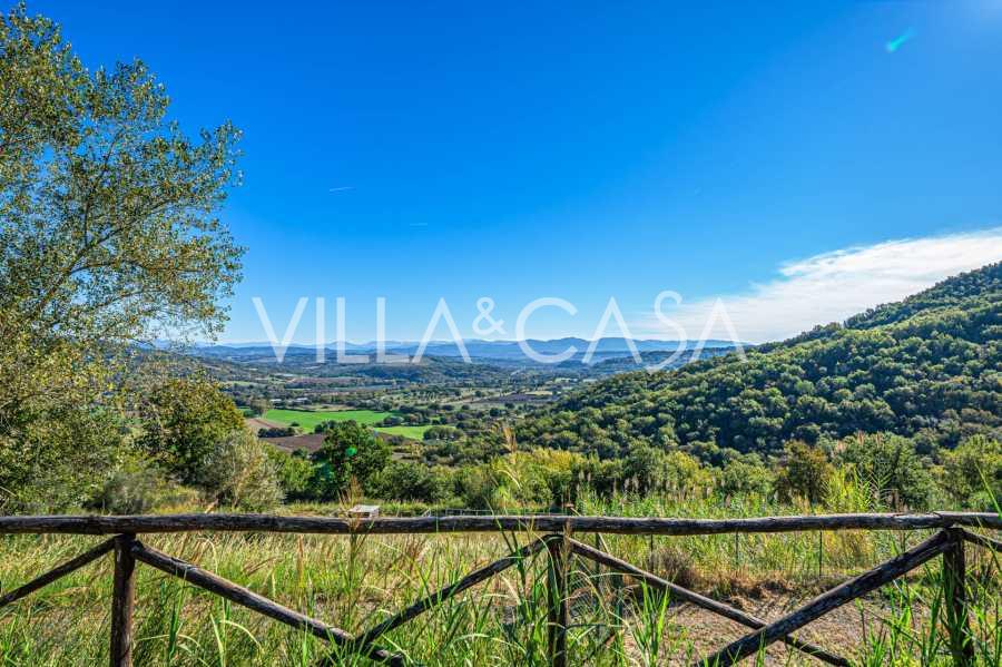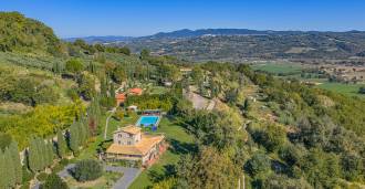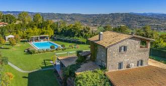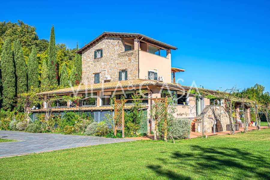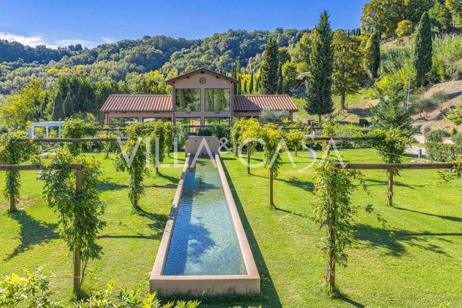 В провинции Витербо, на возвышенности холмов, открывается потрясающий вид на долину Тибра. Поместье занимает около 25 гектаров ухоженного парка, создавая атмосферу полного покоя и уединения. Каждый уголок спроектирован для комфорта, элегантности и гармонии: солнечные террасы, беседки, изящные шезлонги у бассейна и тенистые аллеи, окруженные вековыми деревьями.