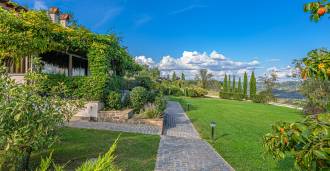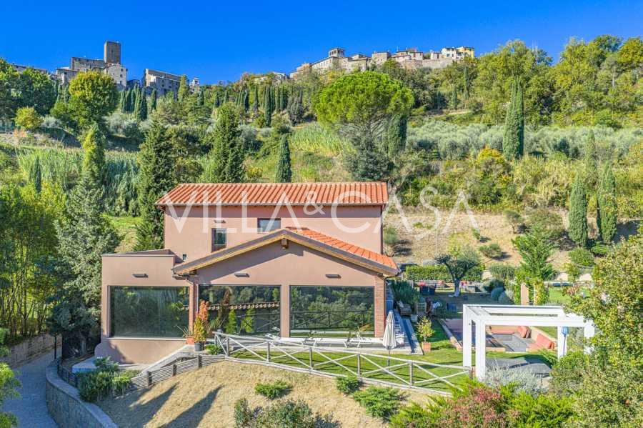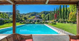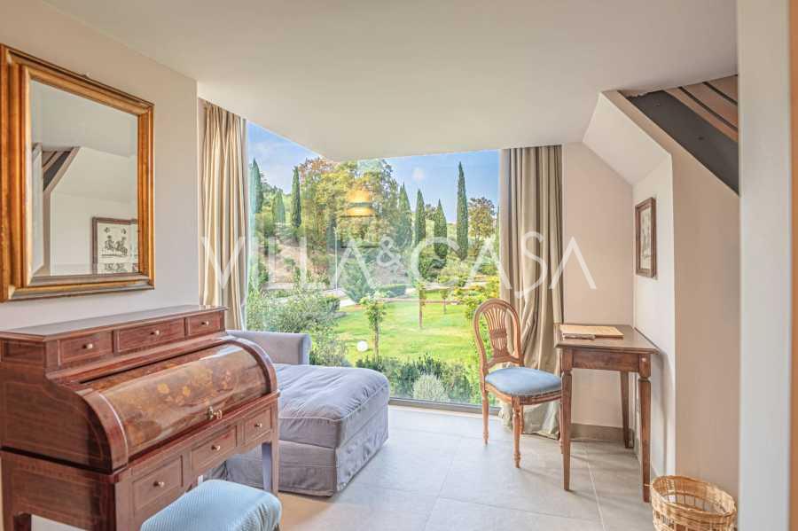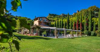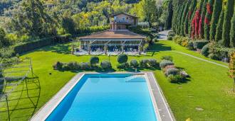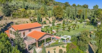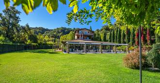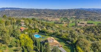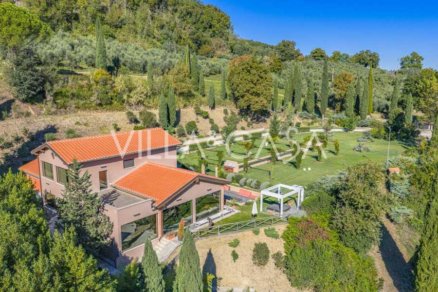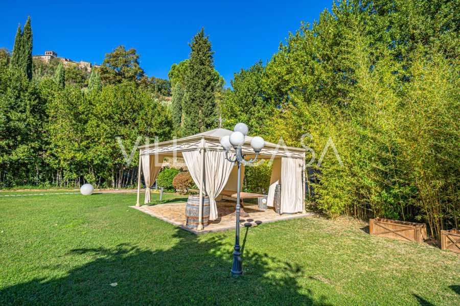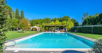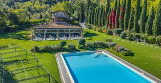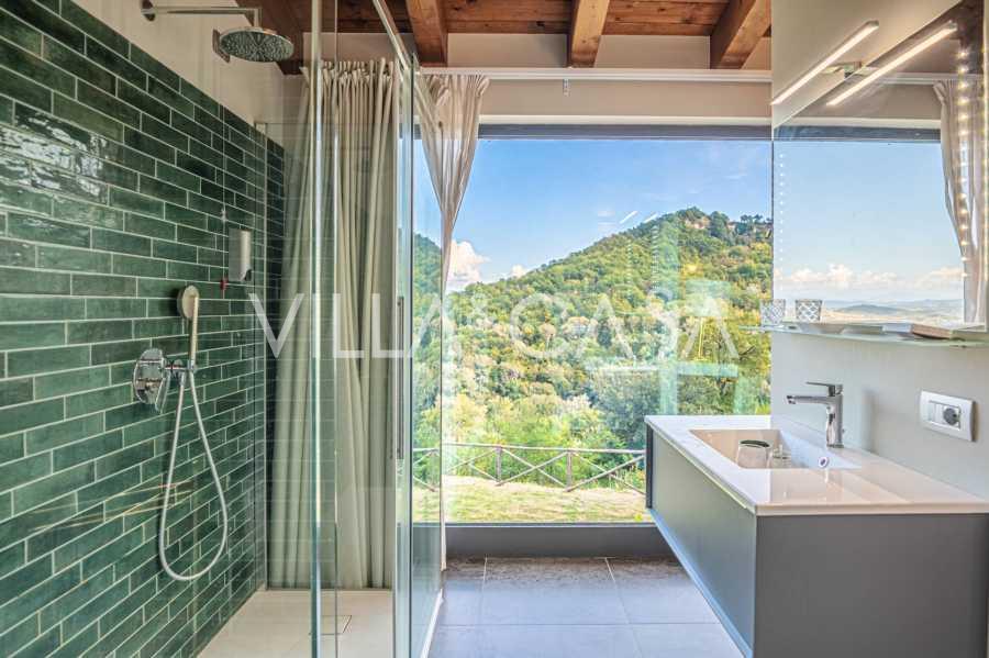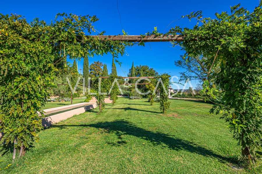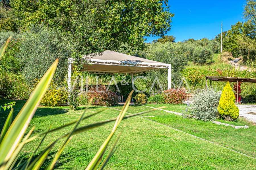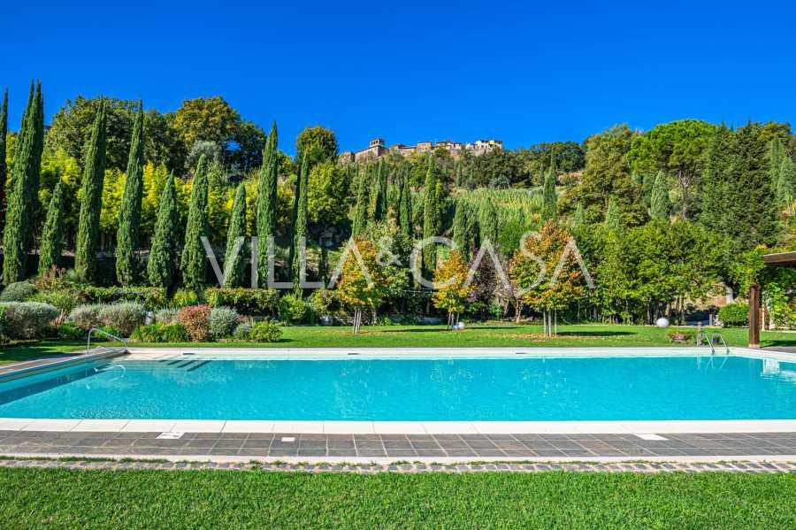 В провинции Витербо, на возвышенности холмов, открывается потрясающий вид на долину Тибра. Поместье занимает около 25 гектаров ухоженного парка, создавая атмосферу полного покоя и уединения. Каждый уголок спроектирован для комфорта, элегантности и гармонии: солнечные террасы, беседки, изящные шезлонги у бассейна и тенистые аллеи, окруженные вековыми деревьями.