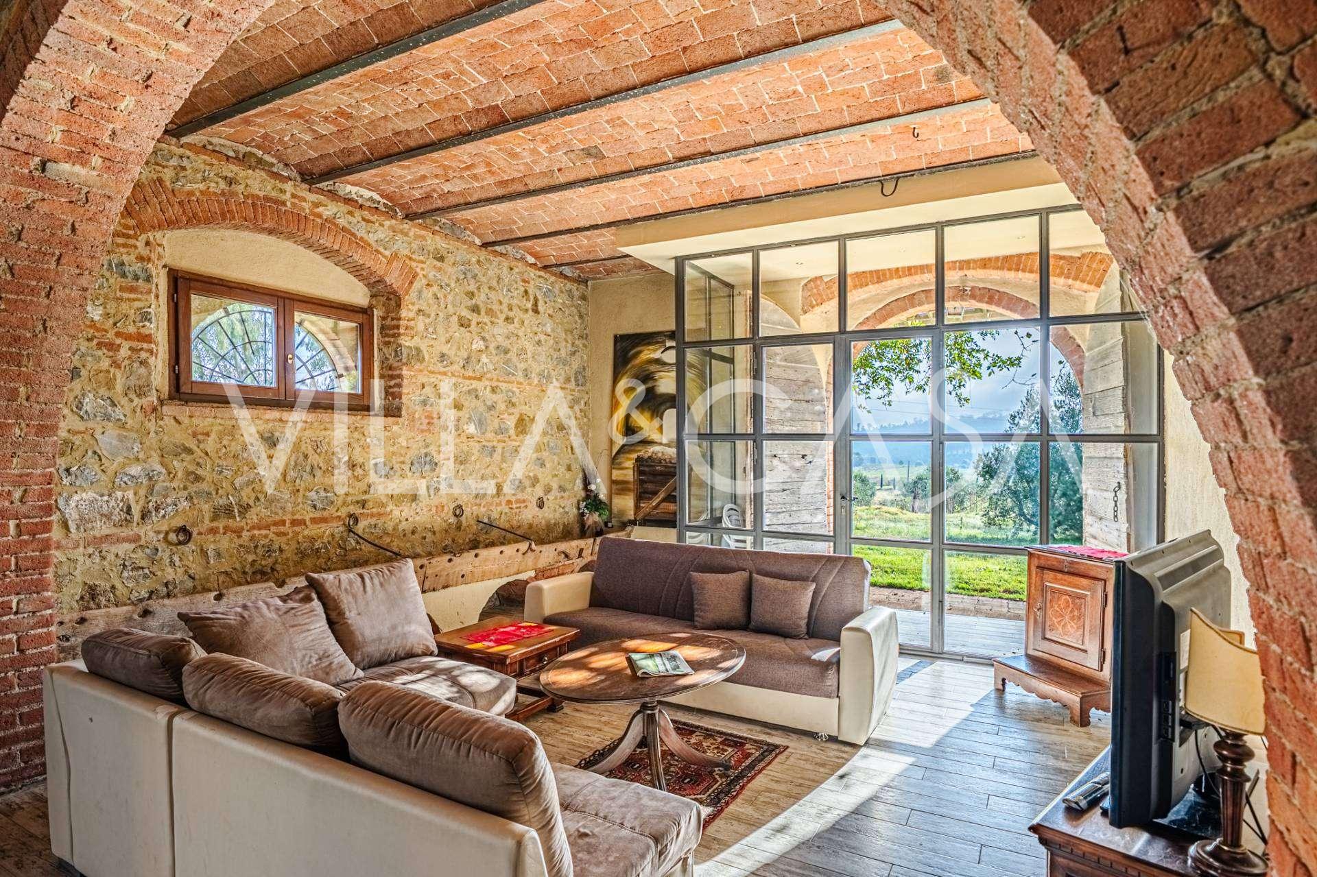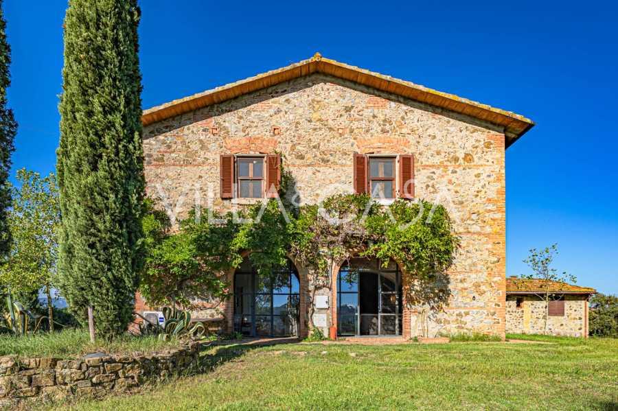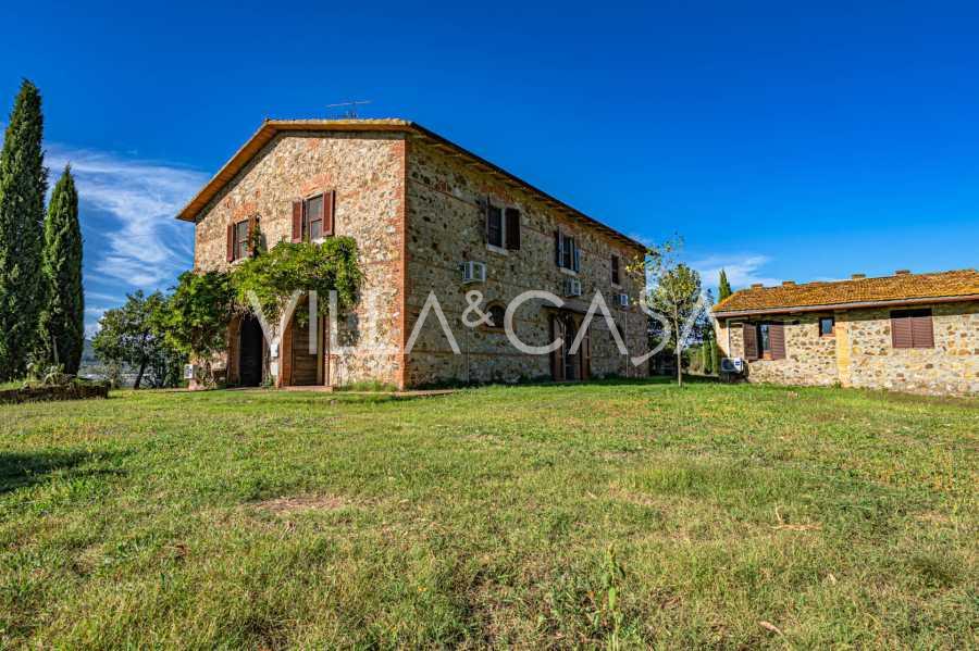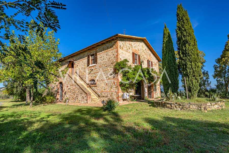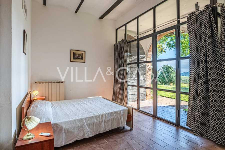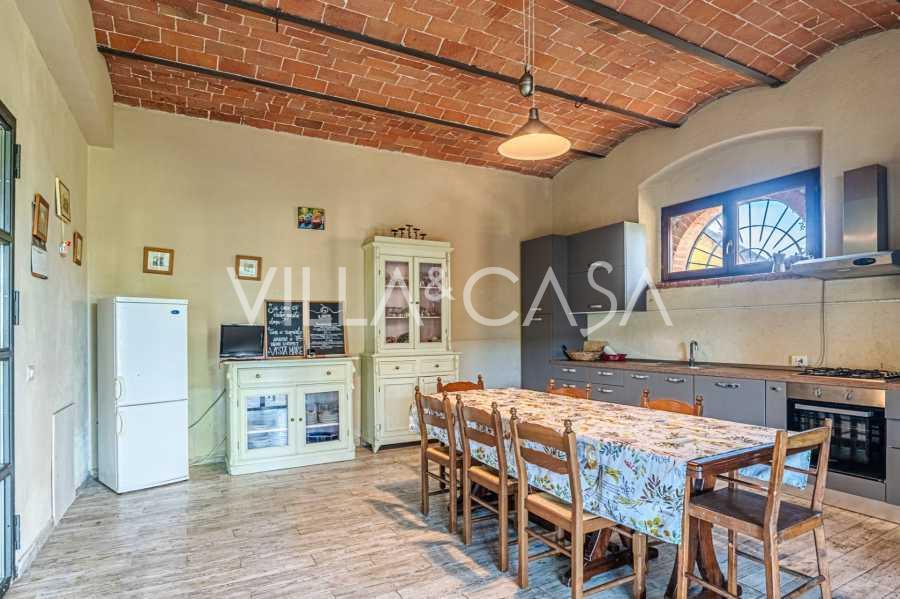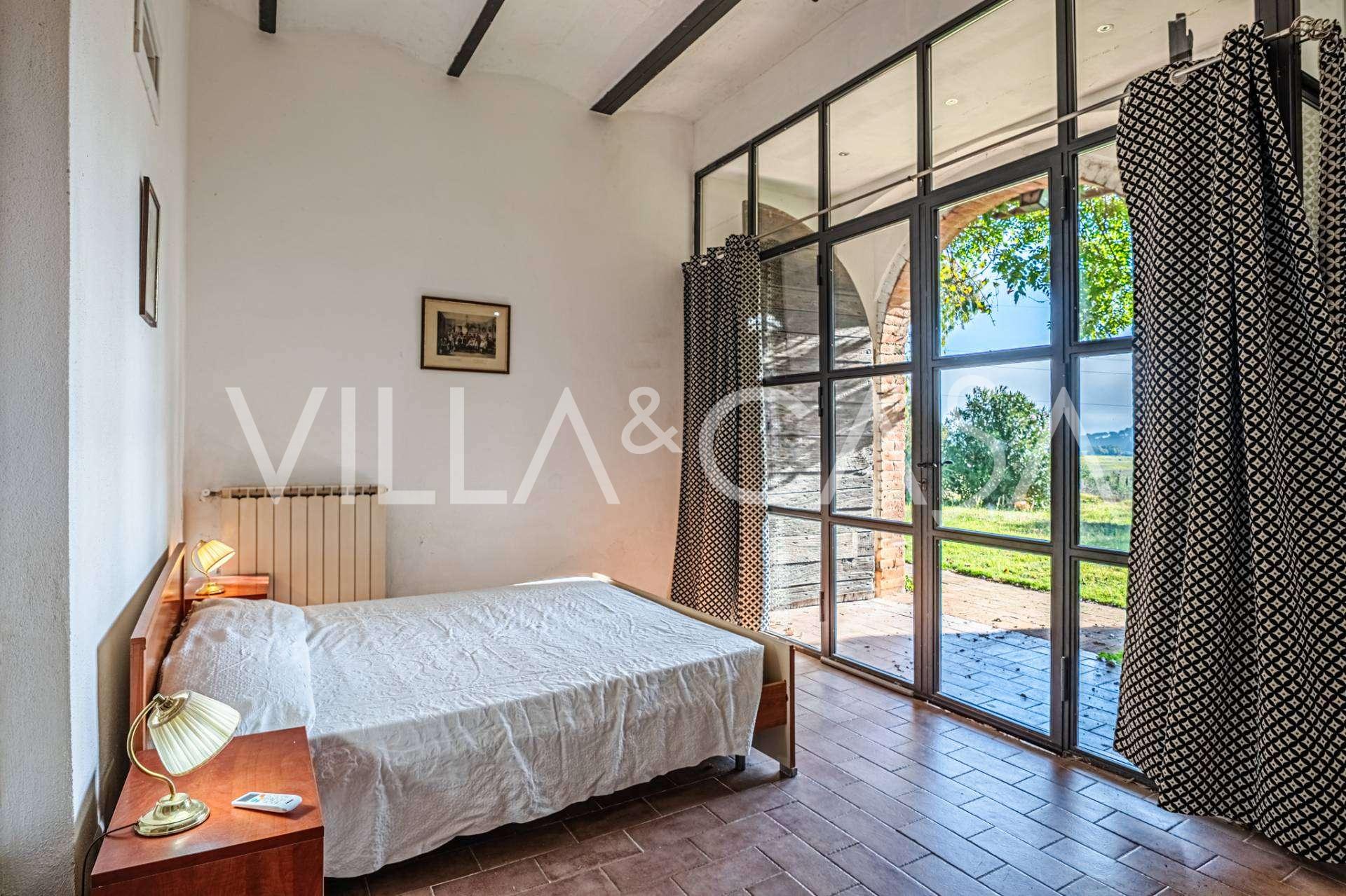 У подножия дома в тишине природы размещен великолепный бассейн с зоной солярия, окруженный живыми изгородями и цветущими клумбами. На территории также есть два гектара виноградников, оливковая роща и плодородные поля, создающие неповторимую тосканскую атмосферу.