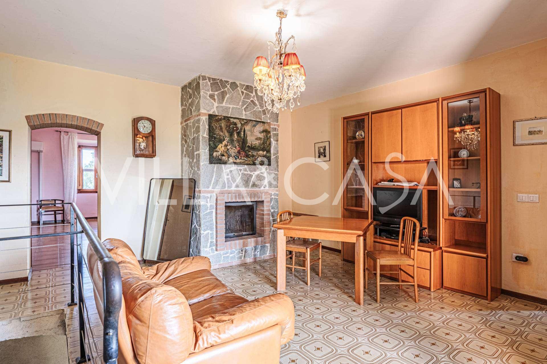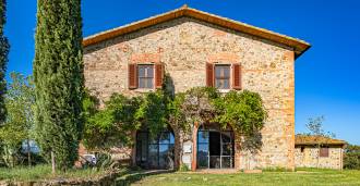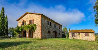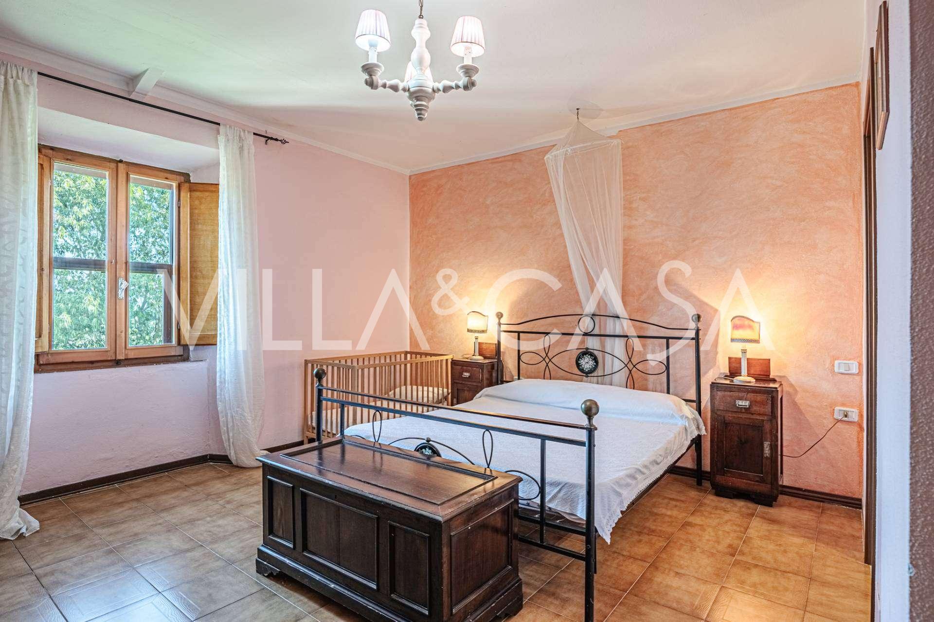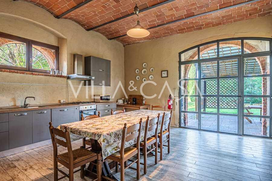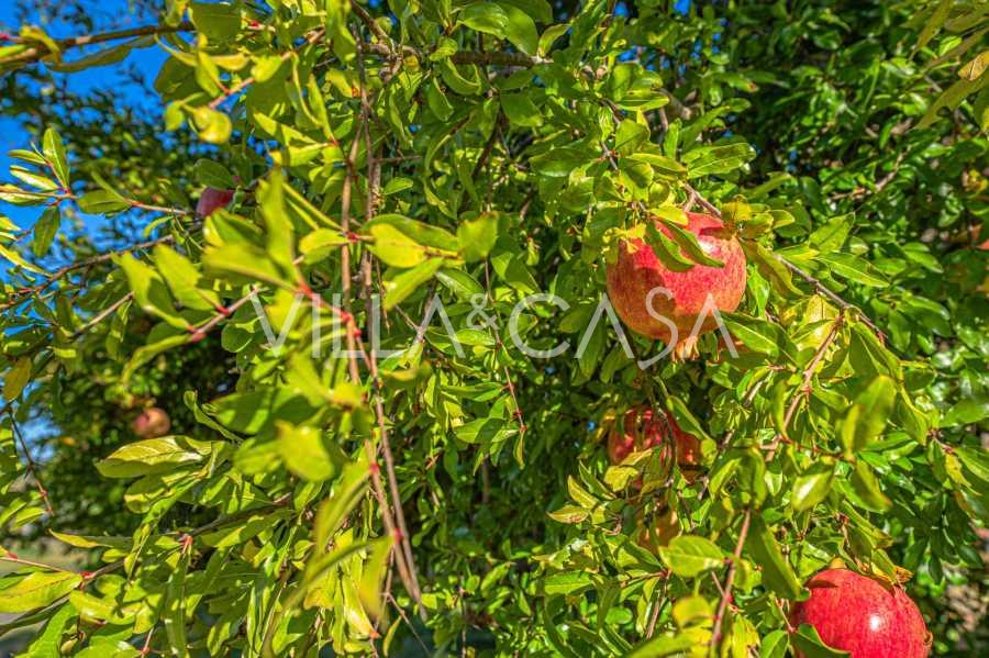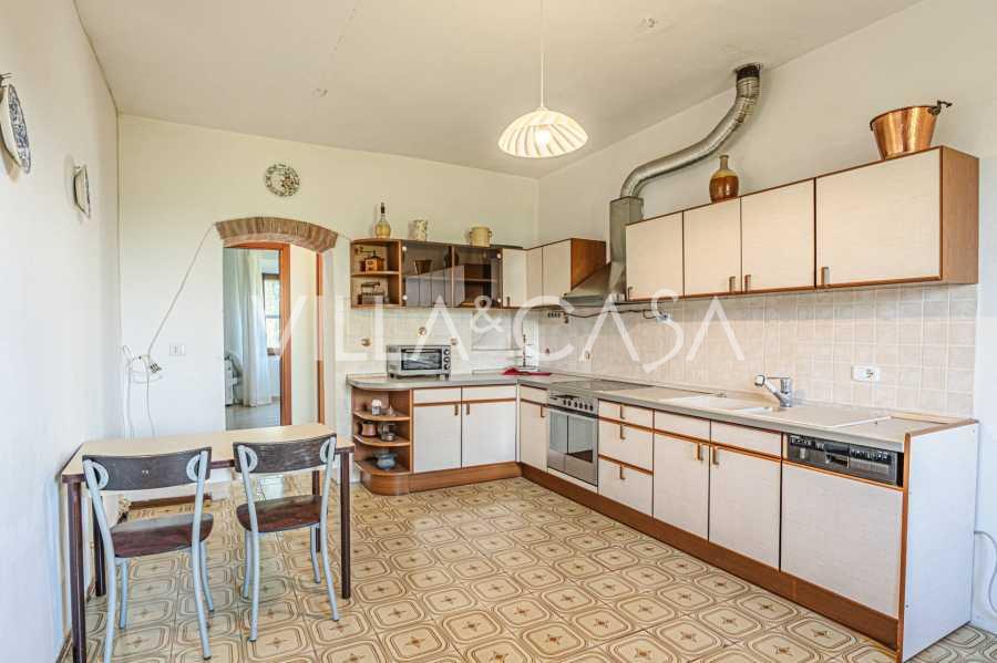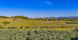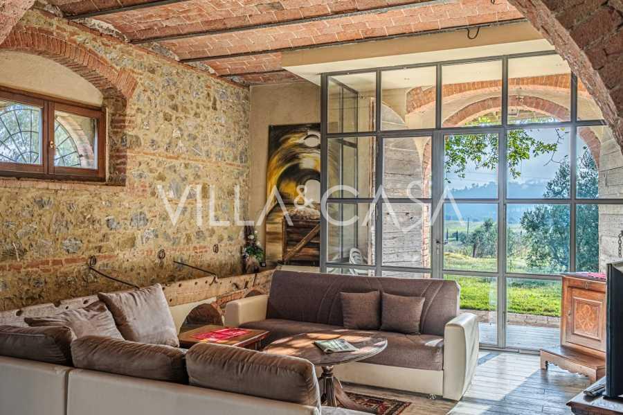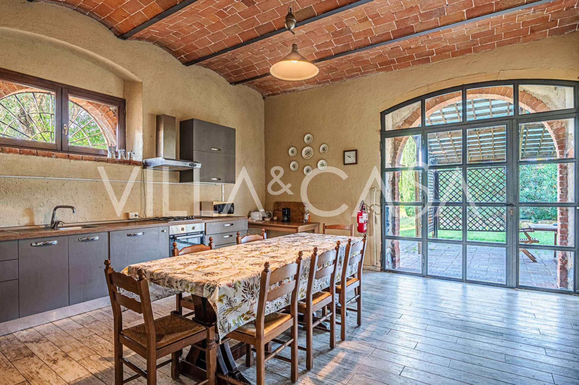 У подножия дома в тишине природы размещен великолепный бассейн с зоной солярия, окруженный живыми изгородями и цветущими клумбами. На территории также есть два гектара виноградников, оливковая роща и плодородные поля, создающие неповторимую тосканскую атмосферу.