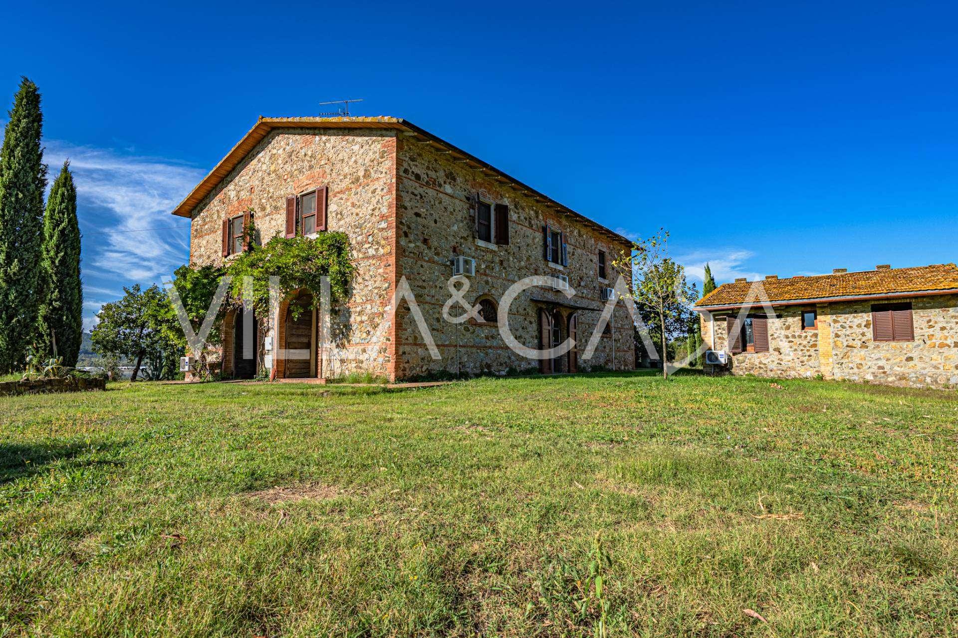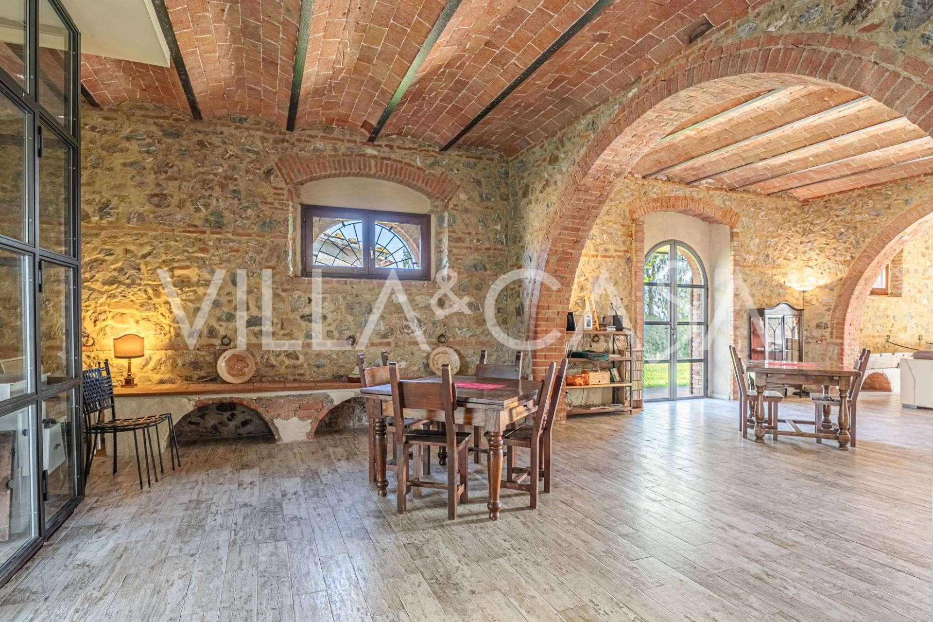 Просторная территория около 30 гектаров окружает дом, превращая его в частное убежище среди зелени тосканских ландшафтов. Историческое каменное строение, бережно отреставрированное, теперь представляет собой изысканный отельный комплекс, где каждая деталь воплощает тосканскую элегантность. Вокруг простираются ухоженные сады с ароматными кустарниками и цветами.