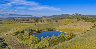 Внутреннее убранство площадью 600 м2 оформлено с утонченным вкусом. На первом этаже находятся просторная гостиная с камином, большая кухня и спальня с ванной комнатой. Второй этаж включает уютную гостиную и пять элегантных спален с четырьмя ванными комнатами, с видом на окрестные холмы и виноградники.