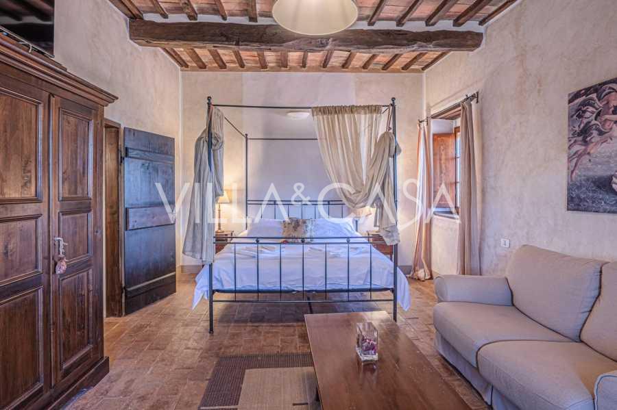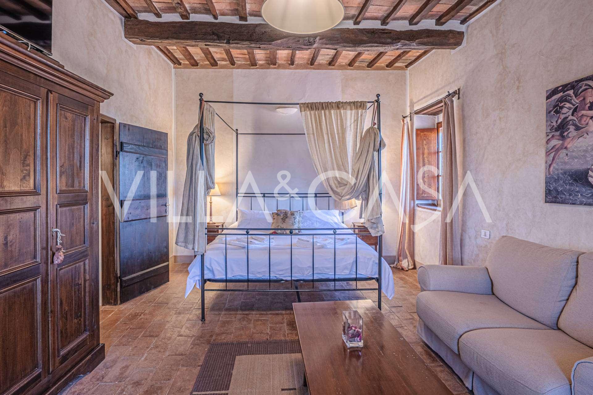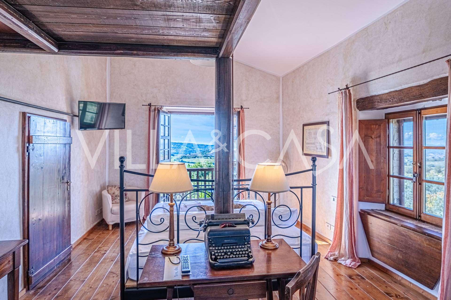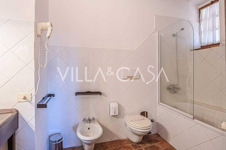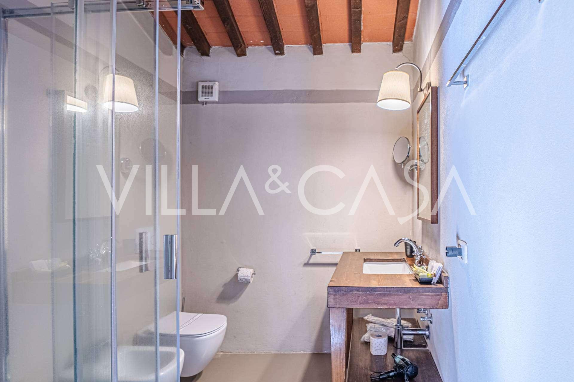 Главное здание, величественная каменная вилла XVII века, хранит очарование своего времени: терракотовые полы, кирпичные арки, массивные потолочные балки и изысканные декоративные элементы. Каждая деталь свидетельствует о подлинности и утончённом вкусе. Современные инженерные системы, такие как отопление с тепловым насосом, обновлённые ванные комнаты и высококачественные отделочные материалы, обеспечивают абсолютный комфорт в любое время года.
