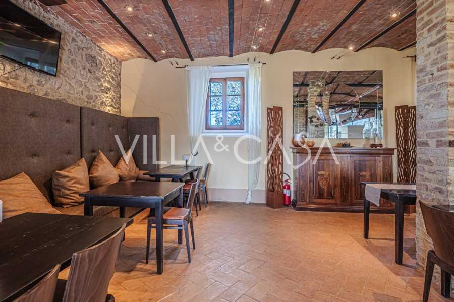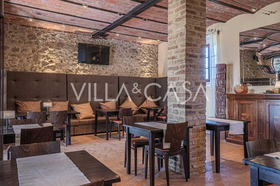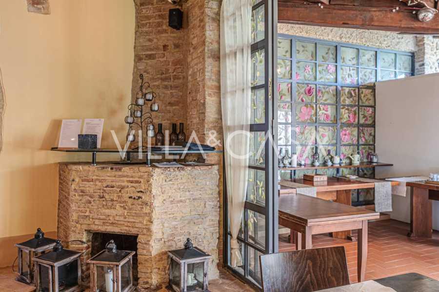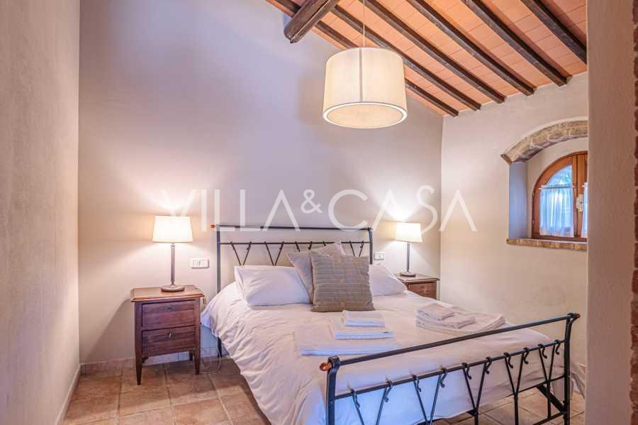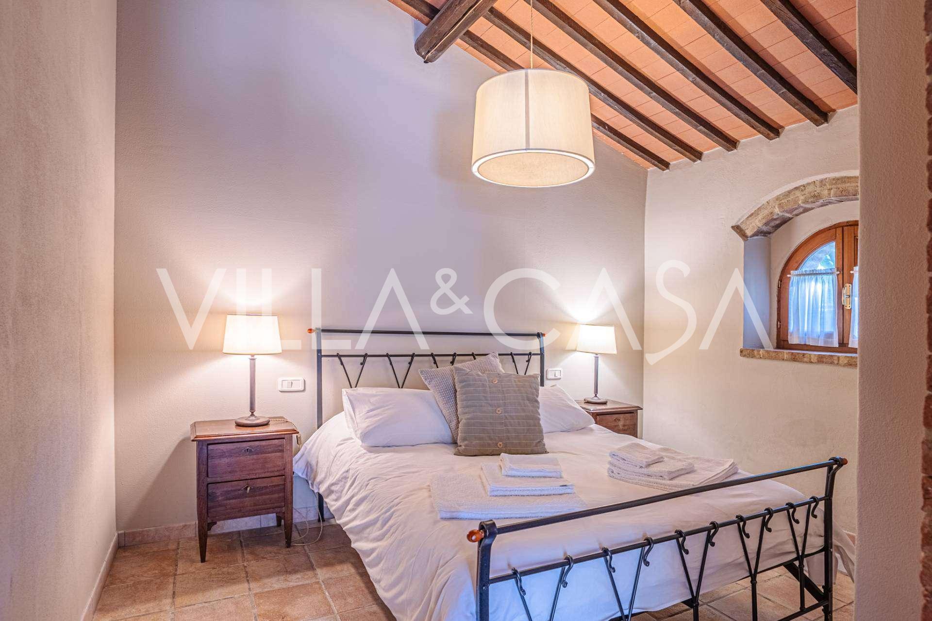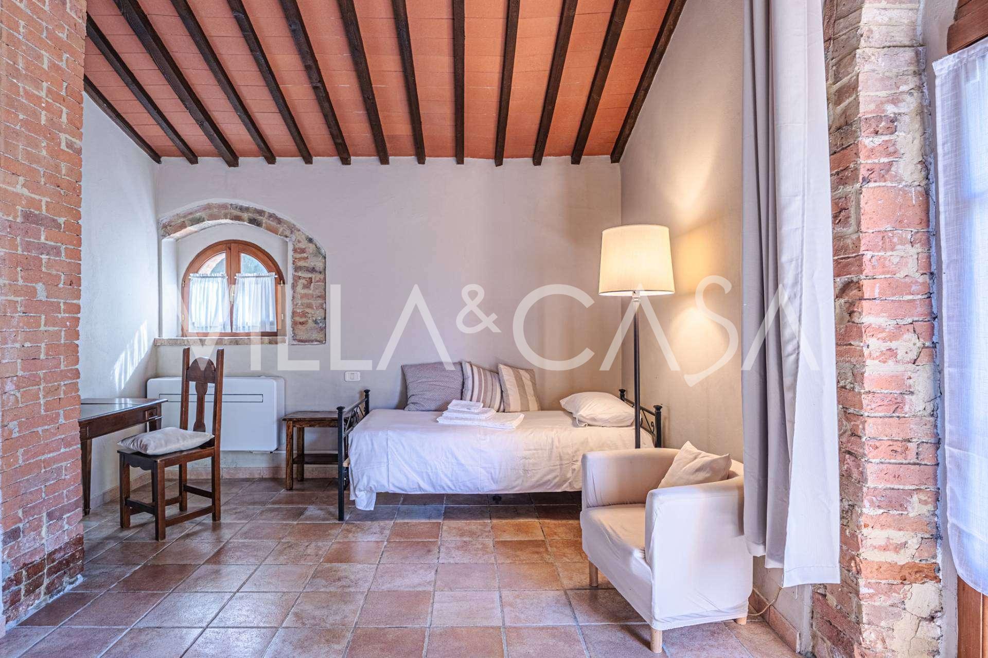 Главное здание, величественная каменная вилла XVII века, хранит очарование своего времени: терракотовые полы, кирпичные арки, массивные потолочные балки и изысканные декоративные элементы. Каждая деталь свидетельствует о подлинности и утончённом вкусе. Современные инженерные системы, такие как отопление с тепловым насосом, обновлённые ванные комнаты и высококачественные отделочные материалы, обеспечивают абсолютный комфорт в любое время года.