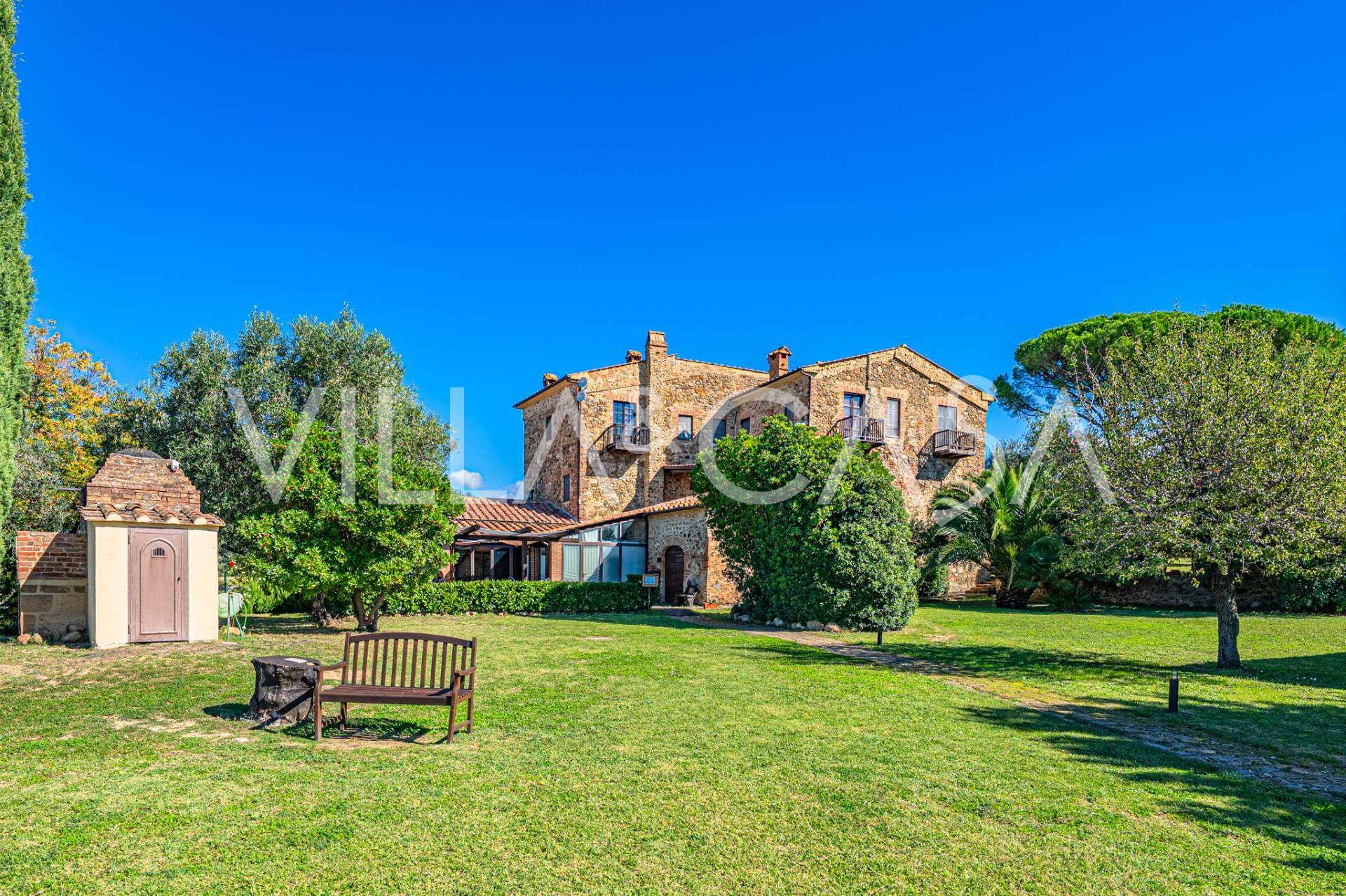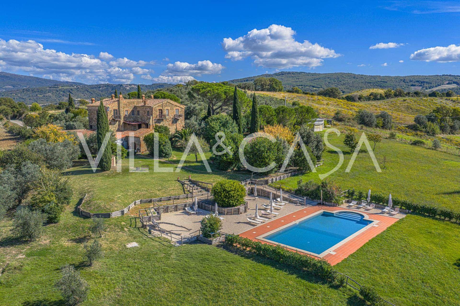 В сердце солнечной тосканской Мареммы, среди мягких холмов между Скансано и Роккальбенью, возвышается красивая историческая вилла XVII века, сочетающая в себе подлинную итальянскую элегантность и современный комфорт. Это утончённое сельское поместье, тщательно отреставрированное с сохранением исторического духа, сейчас представляет собой элегантное жильё, идеально подходящее как для частного проживания, так и для ведения бутик-отеля.