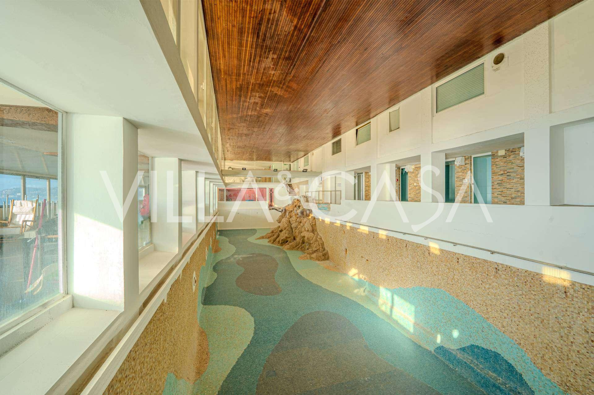 Гостям предлагается крытый бассейн длиной около 25 метров с подогревом морской водой. Отель также располагает частным пляжем с прямым выходом к морю, включающим бассейн с морской водой, зону с шезлонгами и зонтиками, а также галечный пляж, рассчитанный на 100–110 человек, как для гостей отеля, так и для посетителей извне. В летний сезон открывается снэк-бар с легкими закусками, а также центр красоты и талассотерапии.
