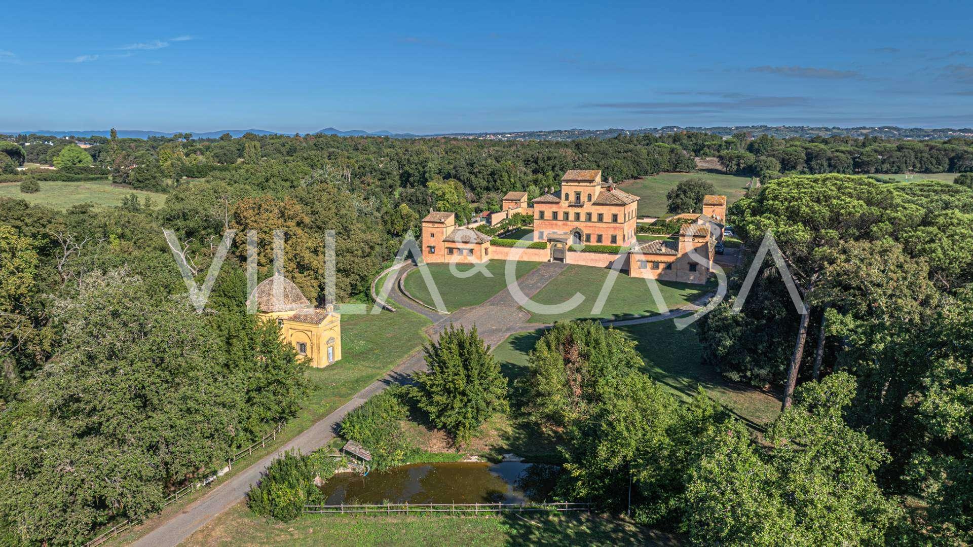 Расположенный всего в двадцати километрах к северу от Рима, замок окружен зелёными просторами тридцати гектаров ухоженных лугов и древних лесов, создающих атмосферу полного уединения и гармонии с природой. Здесь родился легендарный скакун Рибот. Конные постройки соответствуют самым высоким международным стандартам: две конюшни с двадцатью тремя и двадцатью пятью денниками — оснащены комнатами для амуниции, зонами для ухода за лошадьми и уютными апартаментами для сотрудников. На территории также расположены крытый манеж, тренировочная площадка, крытая карусель и открытое поле для тренировок и соревнований. Замок соседствует с одним из самых престижных гольф-клубов Европы и имеет собственную вертолётную площадку. Древние этрусские пещеры, расположенные в поместье, придают месту особое очарование и историческую значимость.