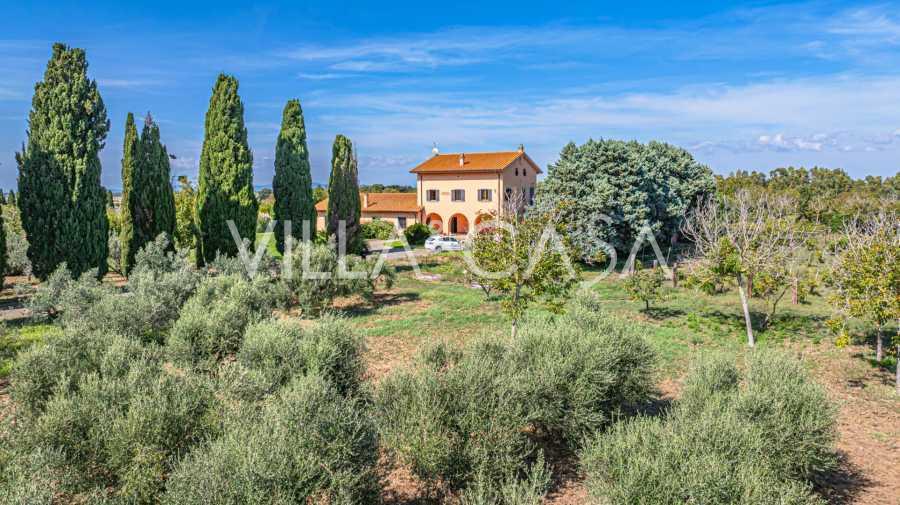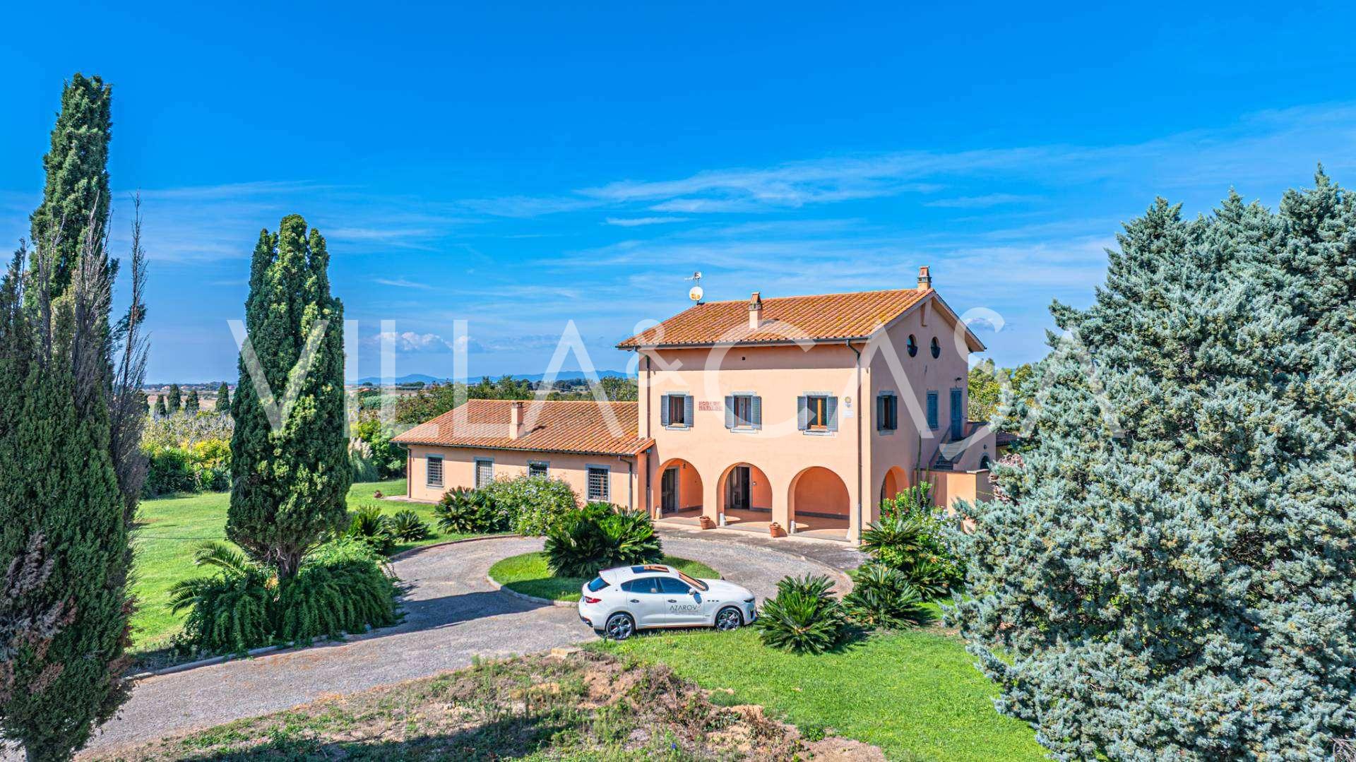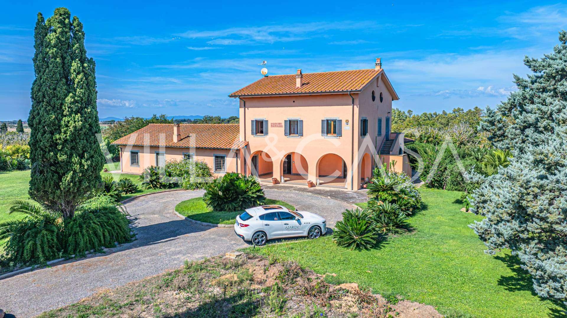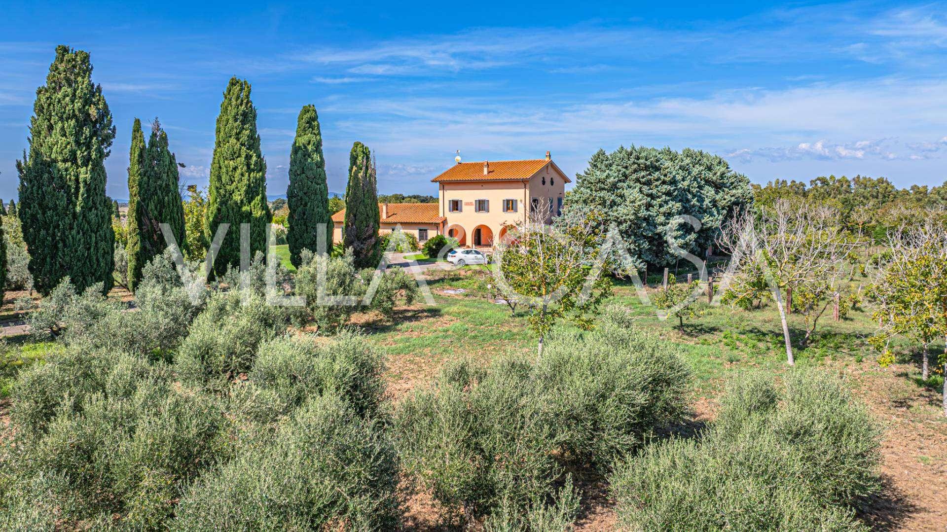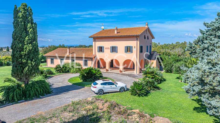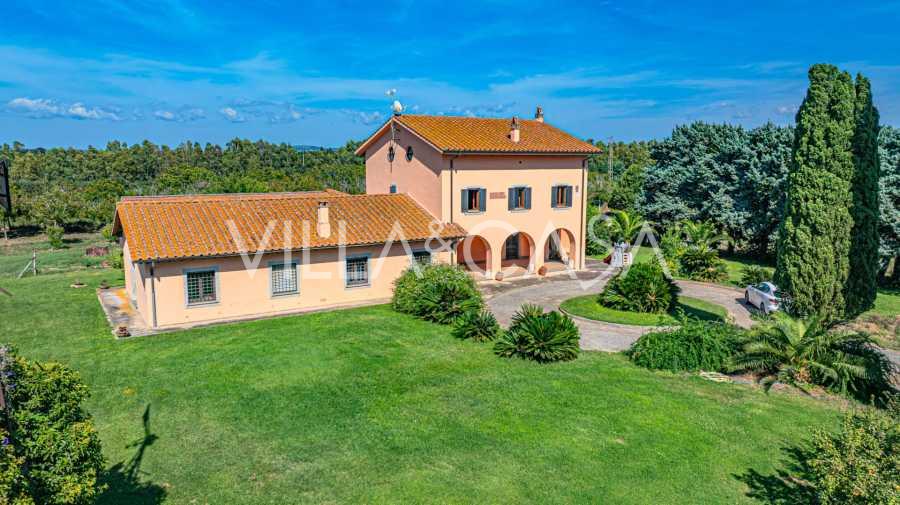 Предлагается для продажи фермерский дом, расположенный в тихом районе тарквинийской сельской местности, всего в нескольких сотнях метров от моря, которое прекрасно видно с верхних этажей. Дом имеет удобное транспортное сообщение с городской средой и прибрежной зоной. Построенный в 1942 году, он был полностью обновлен в 1990-х годах с использованием традиционных материалов высочайшего качества и обставлен авторской мебелью ручной работы. Дом расположен на участке более двух гектаров, окружённом великолепным садом с разнообразными растениями: фруктовые деревья, пальмы, оливковые деревья, орехи, виноградник, тропическая флора, кустарники, розарии и пышные цветы.