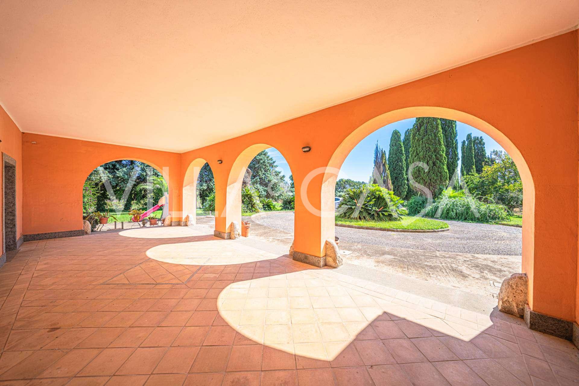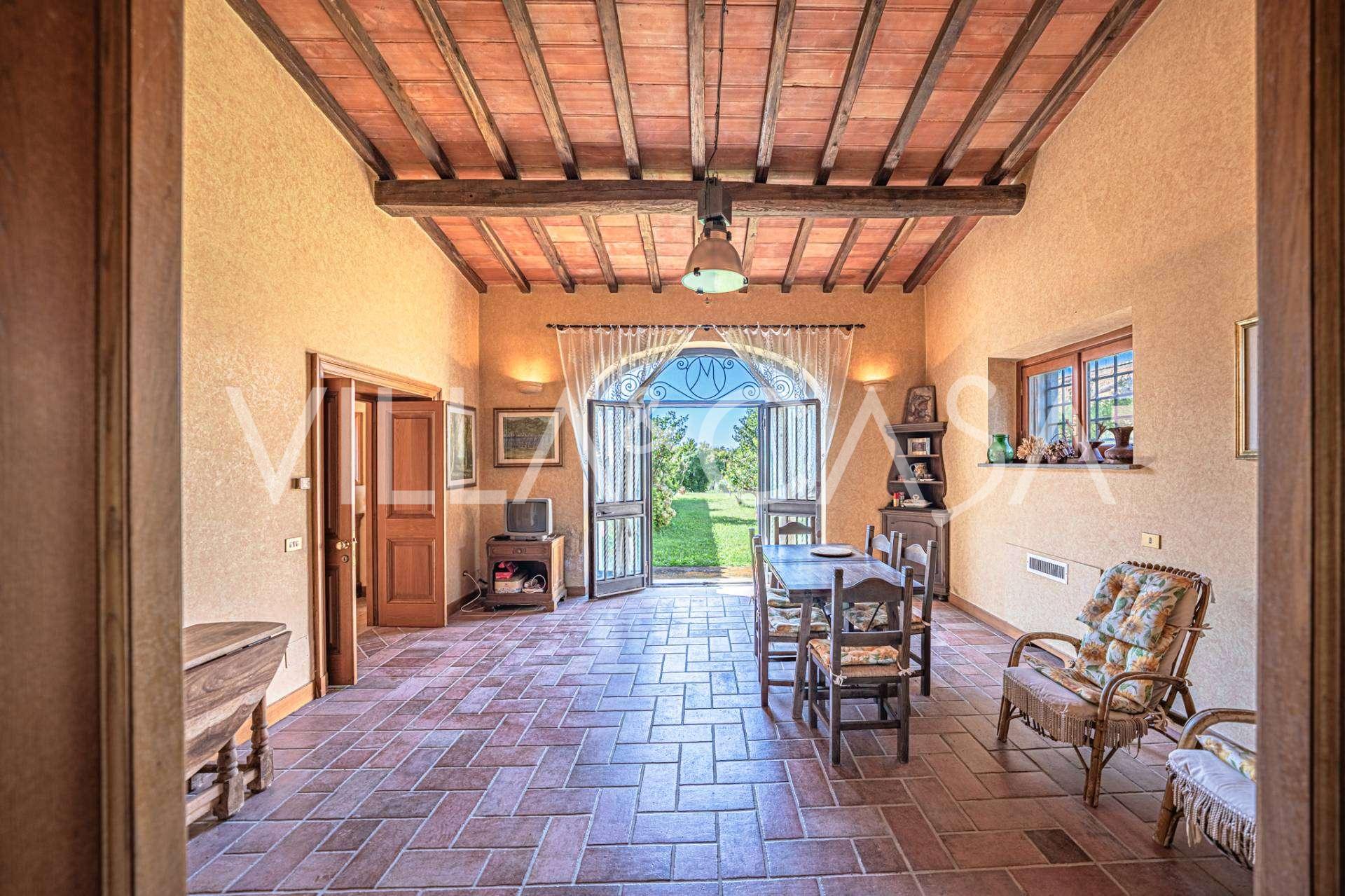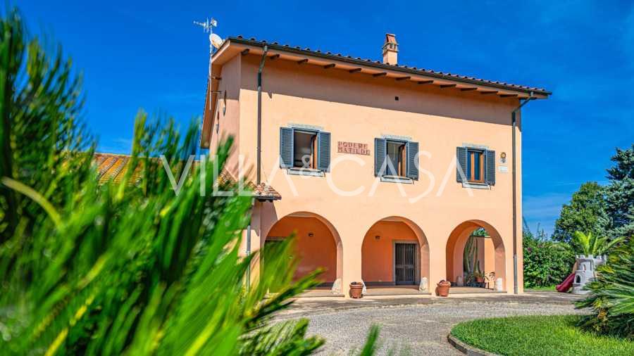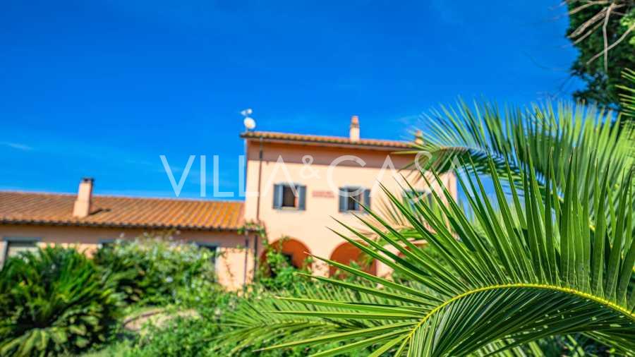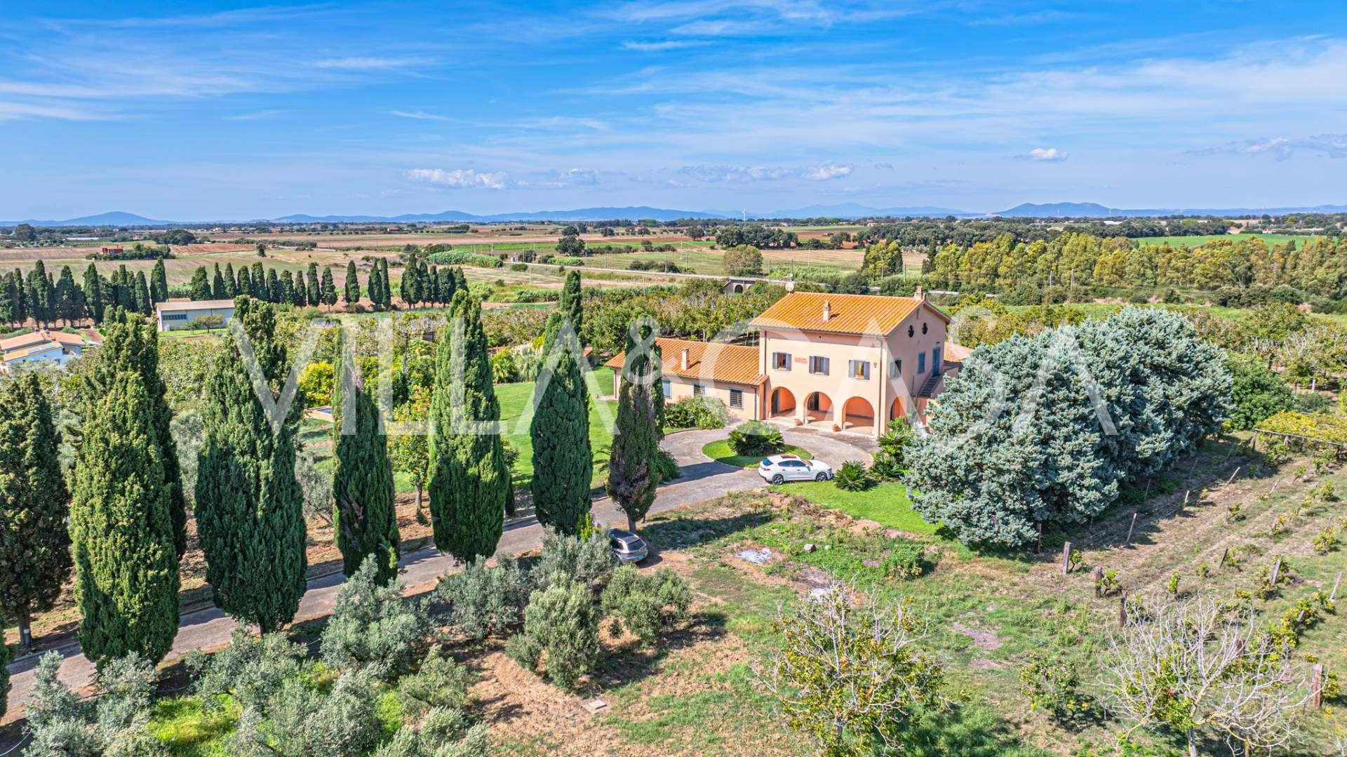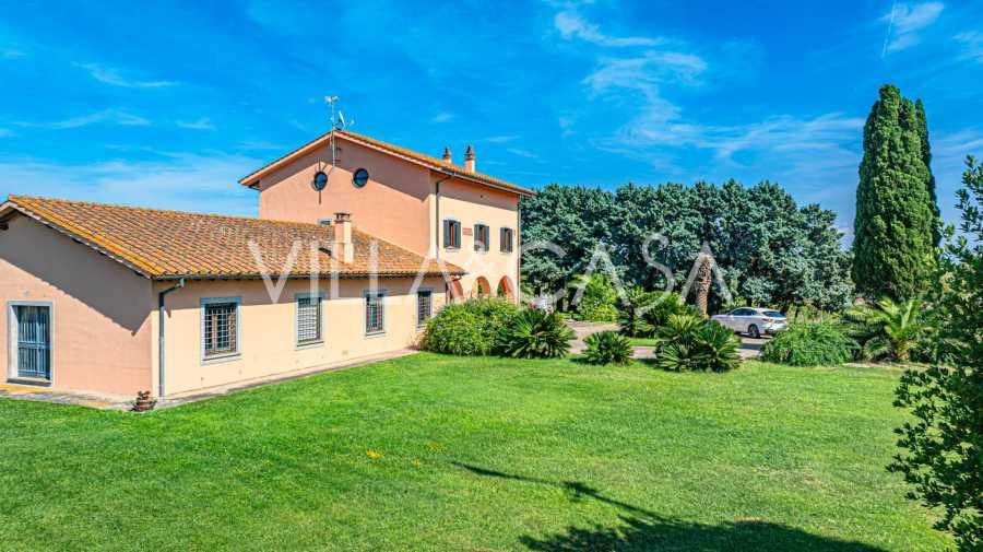 Предлагается для продажи фермерский дом, расположенный в тихом районе тарквинийской сельской местности, всего в нескольких сотнях метров от моря, которое прекрасно видно с верхних этажей. Дом имеет удобное транспортное сообщение с городской средой и прибрежной зоной. Построенный в 1942 году, он был полностью обновлен в 1990-х годах с использованием традиционных материалов высочайшего качества и обставлен авторской мебелью ручной работы. Дом расположен на участке более двух гектаров, окружённом великолепным садом с разнообразными растениями: фруктовые деревья, пальмы, оливковые деревья, орехи, виноградник, тропическая флора, кустарники, розарии и пышные цветы.