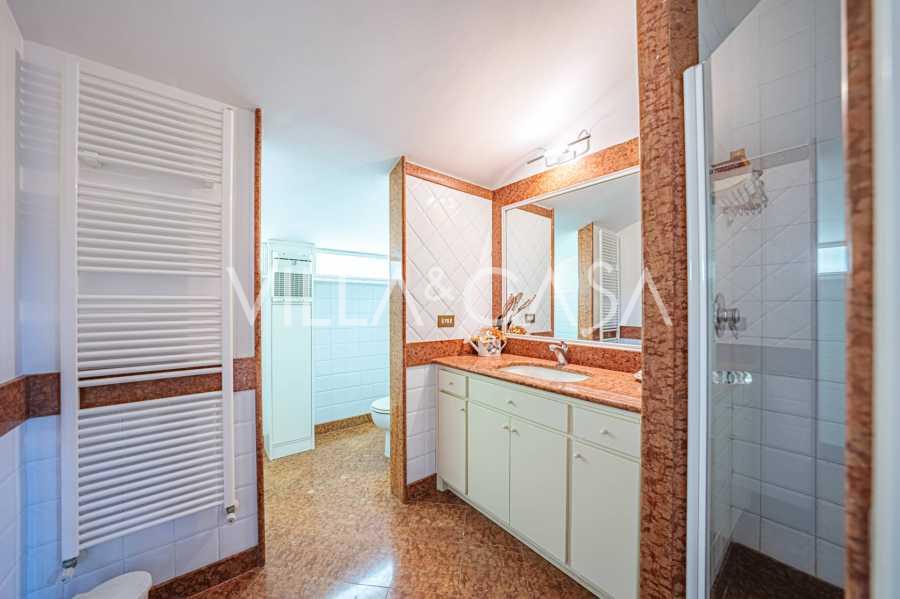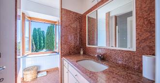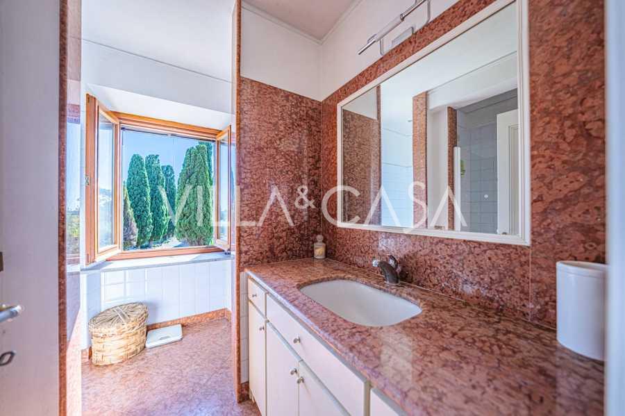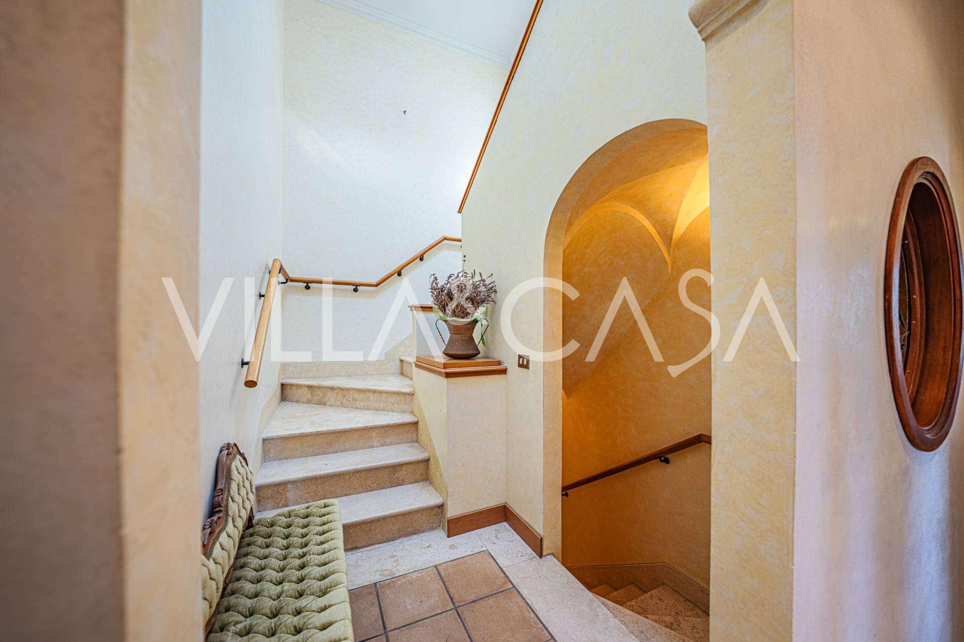Все спальни отделаны уникальным оливковым паркетом с геометрическим узором, в кухне и гостиной использована терракотовая плитка ручной работы, а в ванных комнатах, украшенных стационарными элементами, применён роскошный красный мрамор Вероны. Внутренняя столярка изготовлена из массива дерева, внешние оконные элементы выполнены из кованого железа.