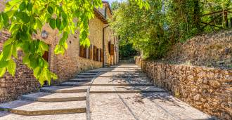 Архитектурный план, сохранивший дух средневекового поселения, образует живописный ансамбль: каменные дворики, арочные лоджии, террасы с видами на долину, старинные лестницы и таинственные переулки, ведущие к удивительным видам и уединённым местам.