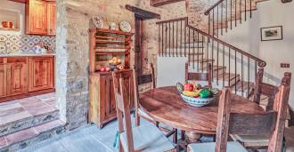 Интерьеры бережно хранят историческую атмосферу борго: антикварная терракотовая плитка, деревянные балки ручной работы, каменные стены и аутентичные камины, объединённые с современными инженерными решениями, автономным отоплением и полностью оснащёнными кухнями. Каждое помещение продумано до мелочей, чтобы создавать атмосферу гармонии, уюта и вдохновляющей роскоши.